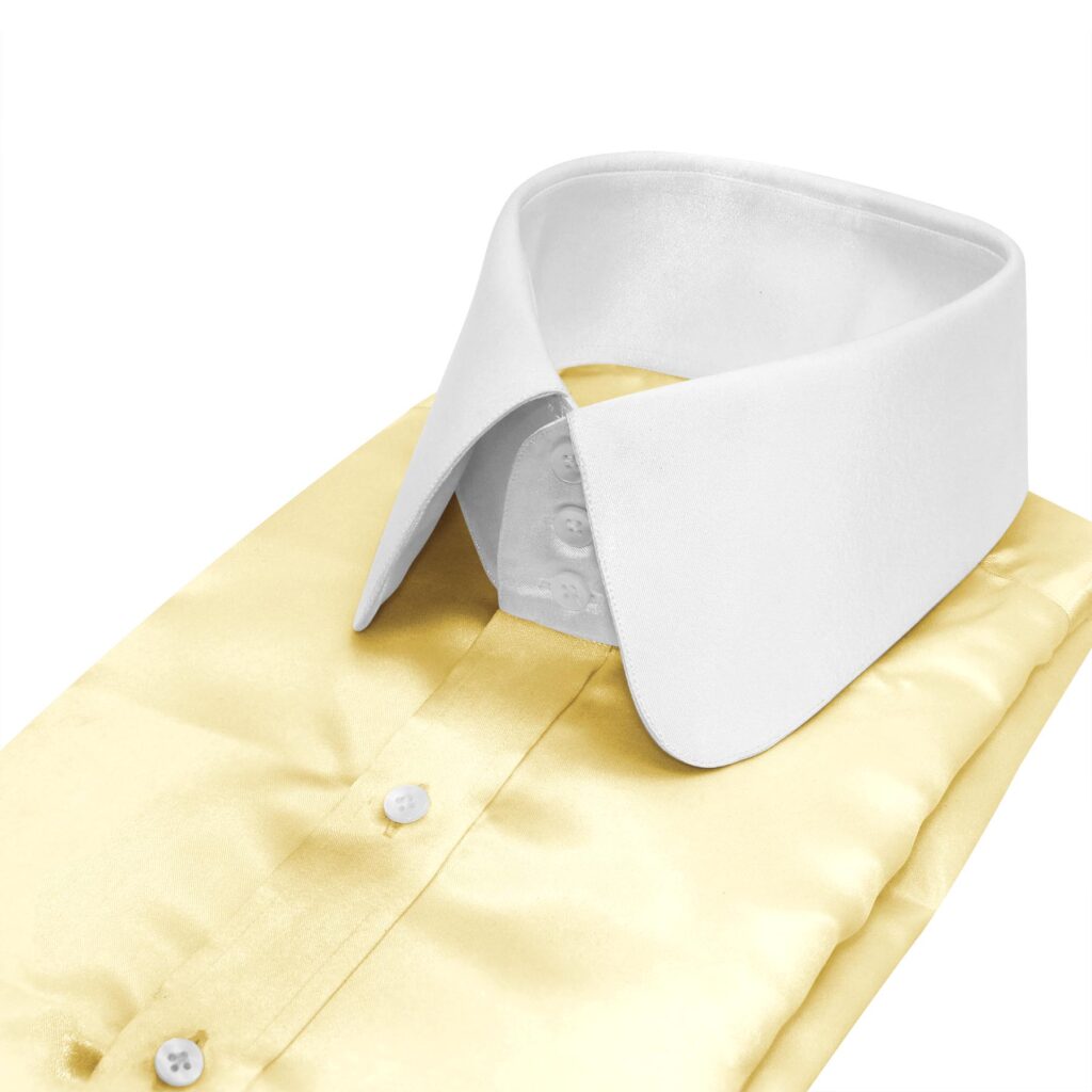 Black Silky Satin Contrast High Penny 3 Button Collar