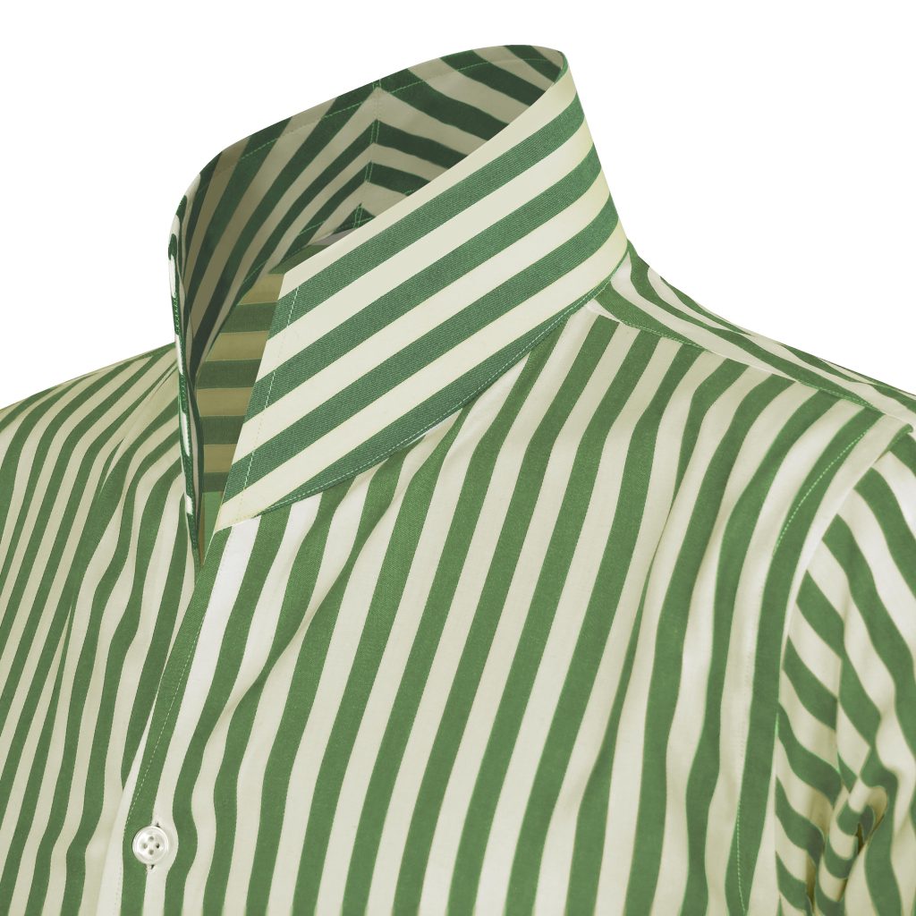 Green & Cream Stripes High Open Cutaway Collar