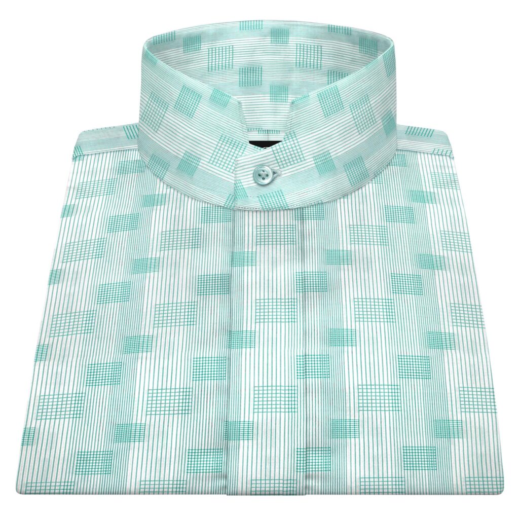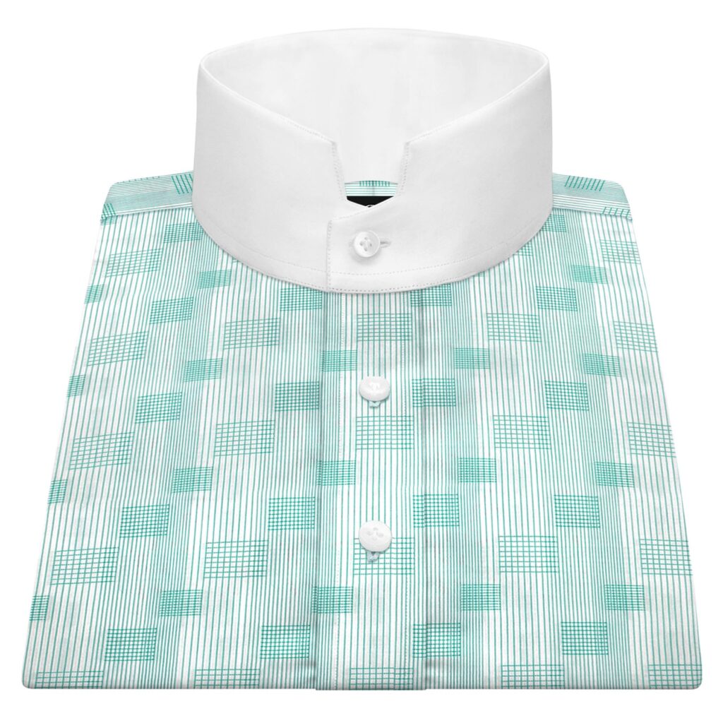 Green Grid Stripes High Stand Collar
