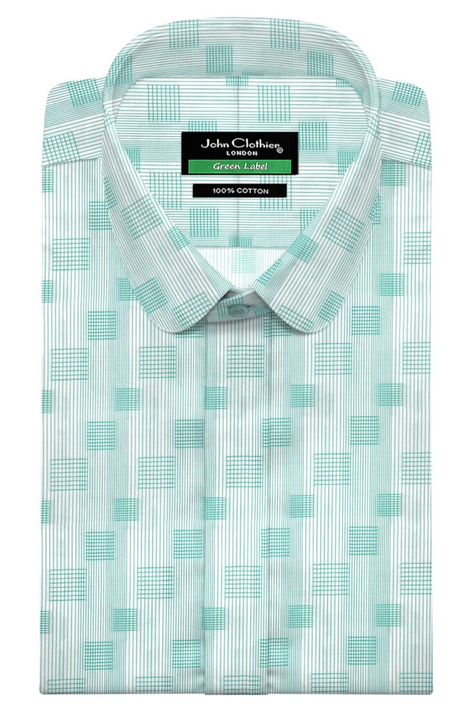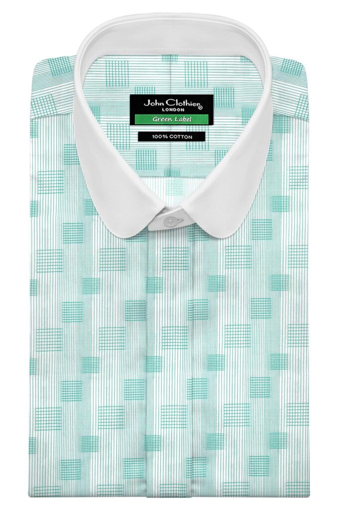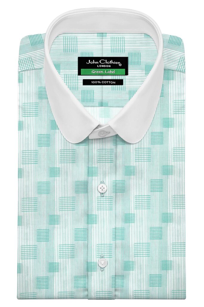 Sea Green Pinstripes High Button Down 2 Button Collar