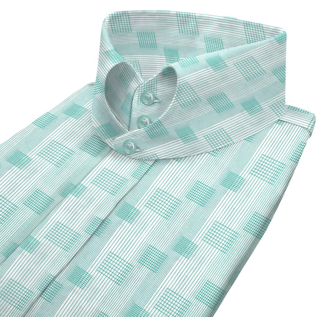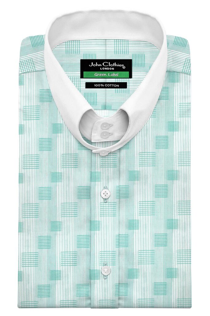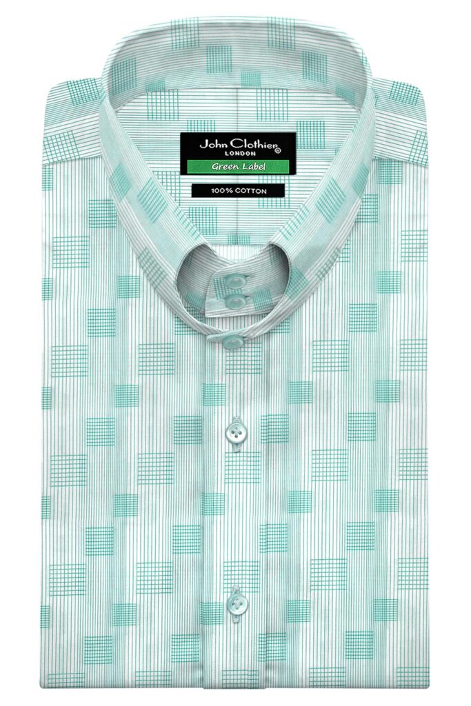 Mint Green Square Motif Stripes High Band 2 Button Collar Mint Green Square Motif Stripes High Band 2 Button Collar Price range: £90.00 through £130.00