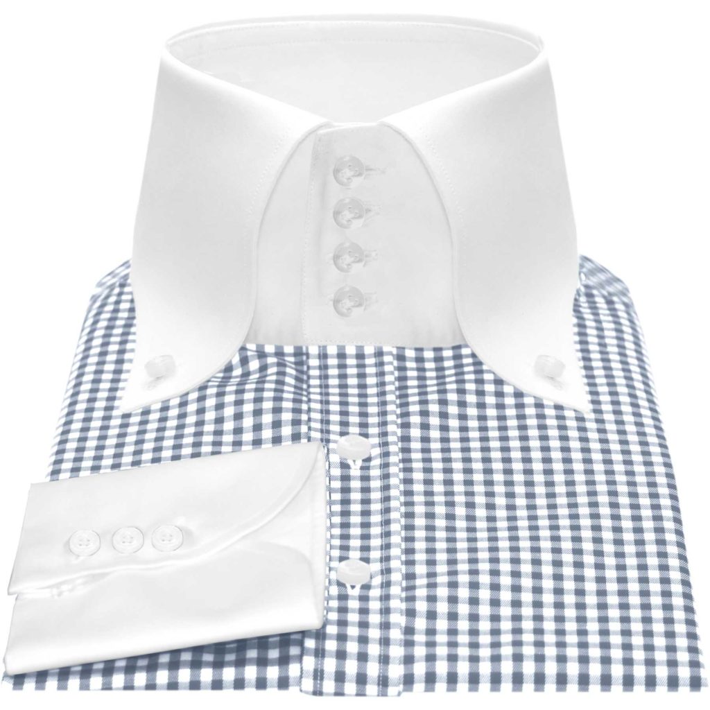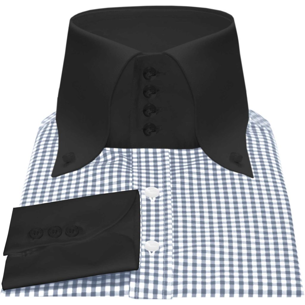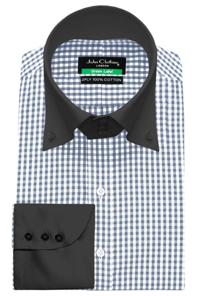 Grey Gingham Checks High Cutaway 3 Button Collar
