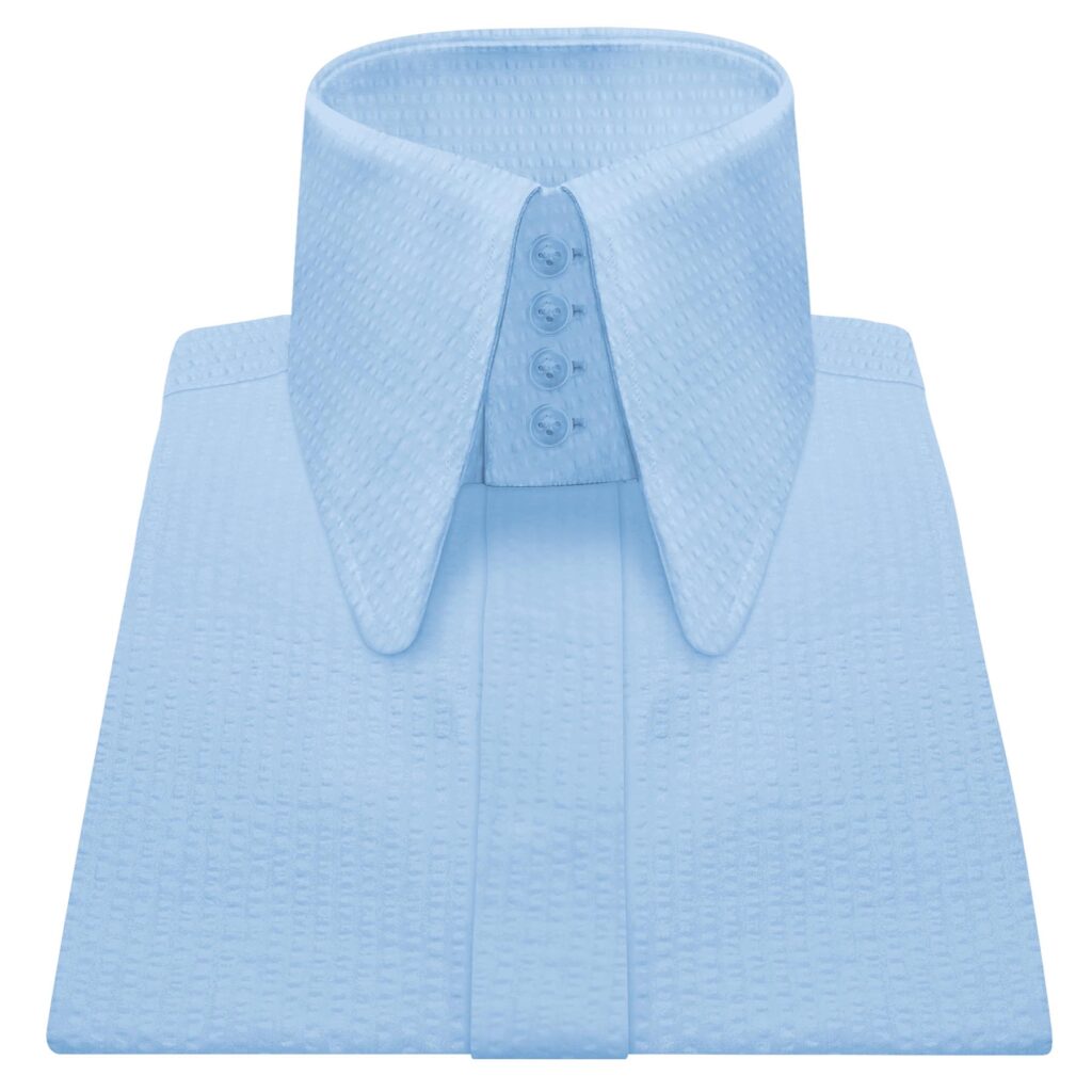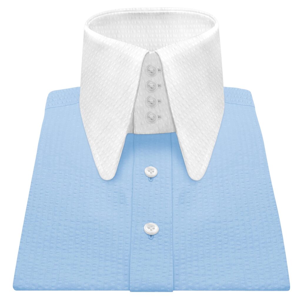 Green Blue Seersucker Stripes High Long Round Tip 4 Button Collar