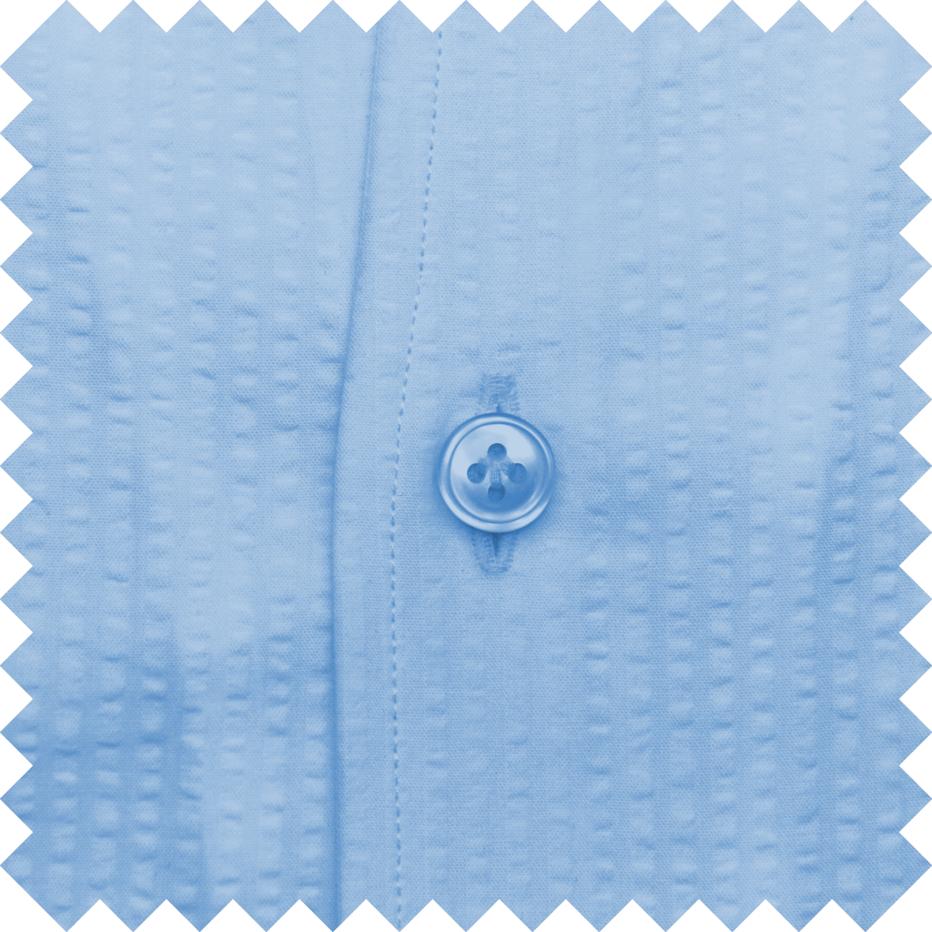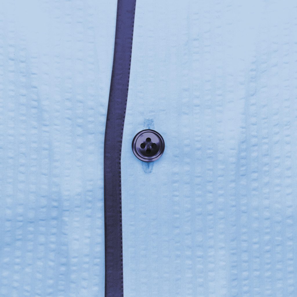Light Blue Seersucker Contrast Stitch High Open Collar Navy Blue Buttons