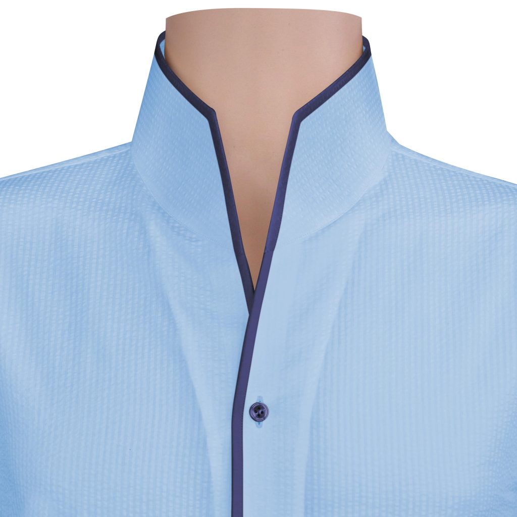 Light Blue Seersucker High Open Collar Highlighted White Piping