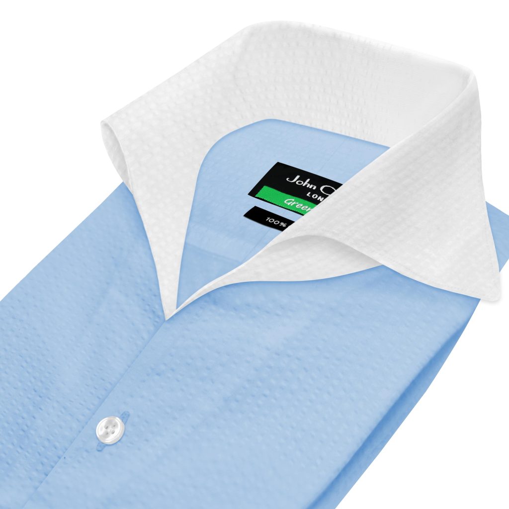 Dark Green Seersucker High Open Cutaway Collar