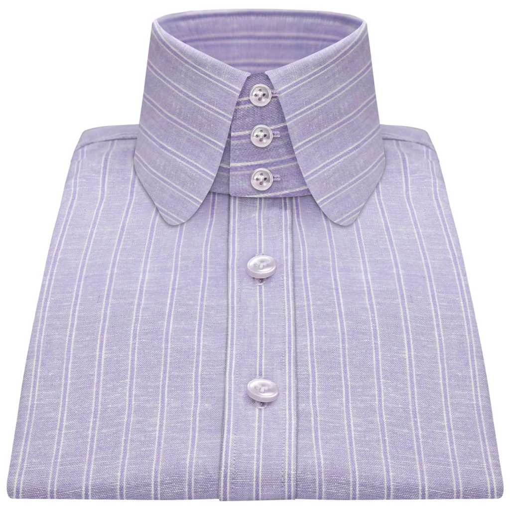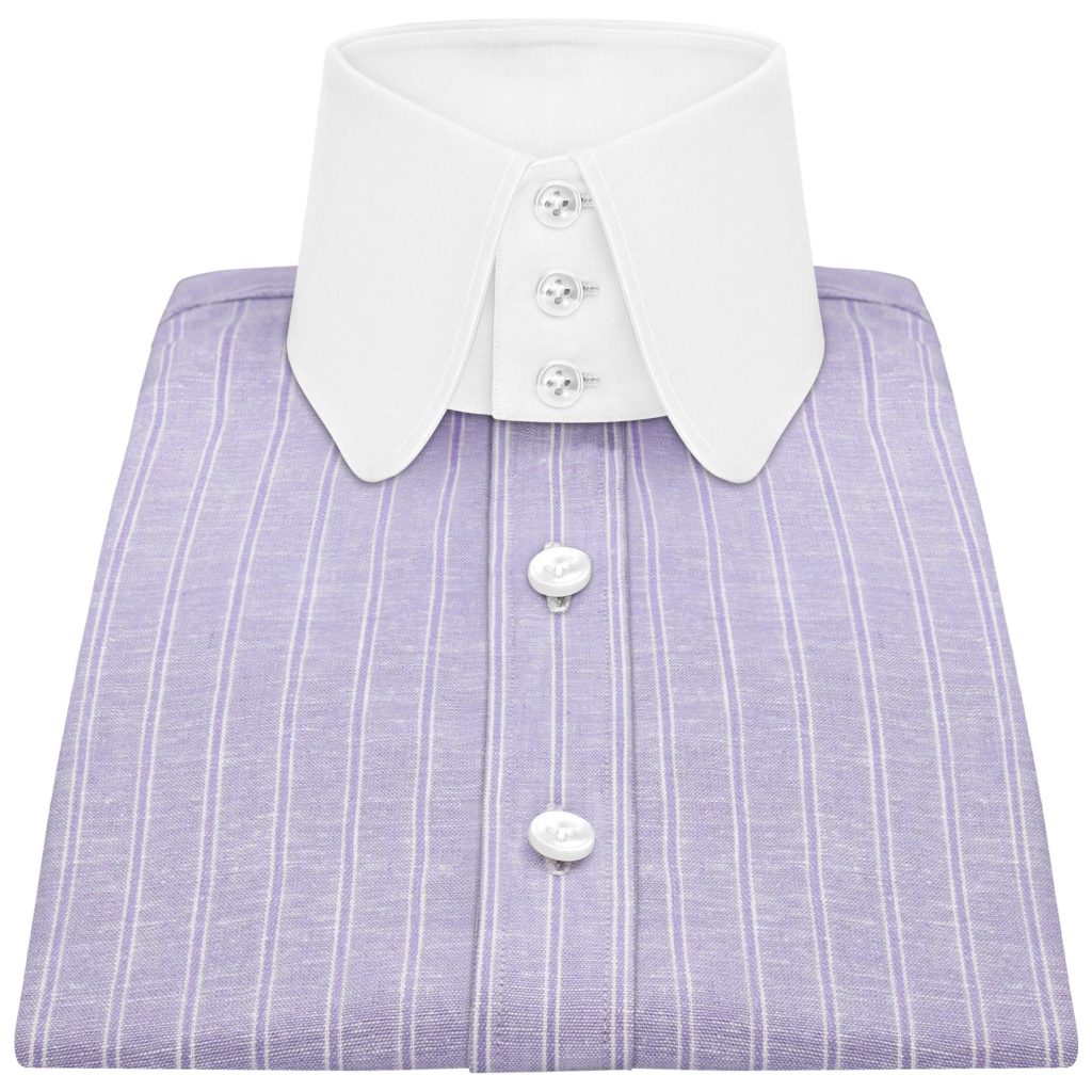Lilac Linen Stripes High Spread 2 Button Collar