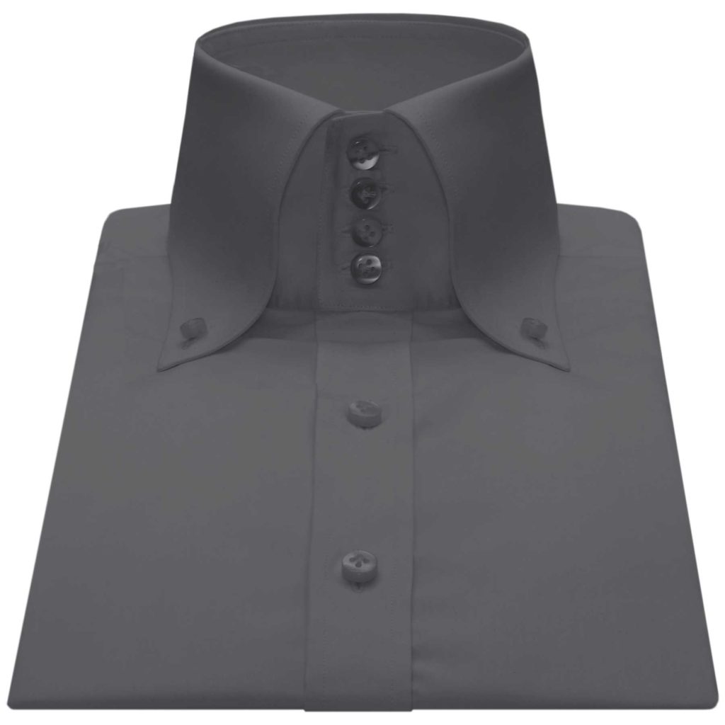 Dark Grey High Button Down 4 Button Down Collar Hidden Placket