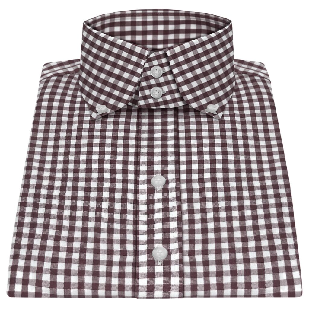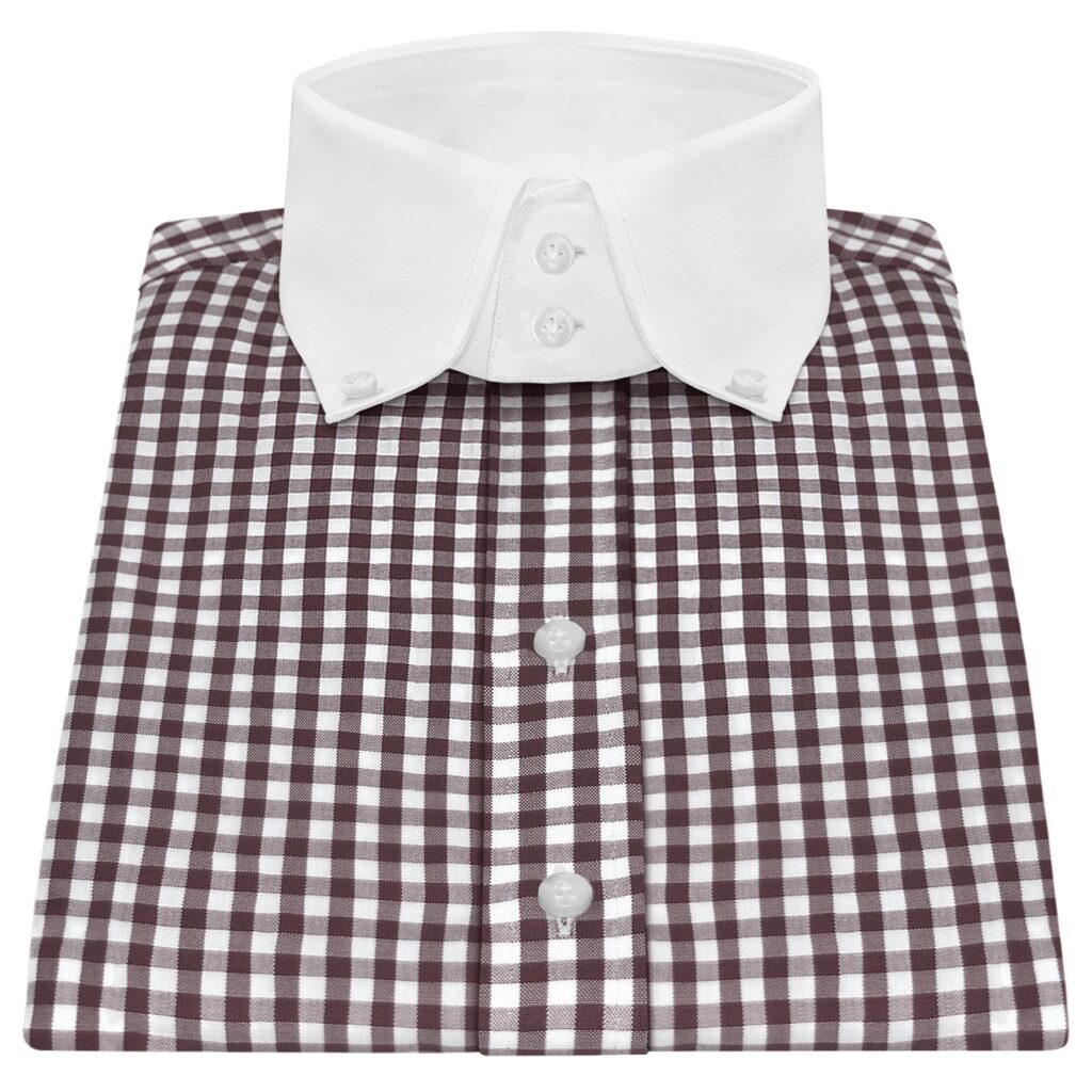 Sea Blue Gingham Checks High Button Down 2 Button Collar