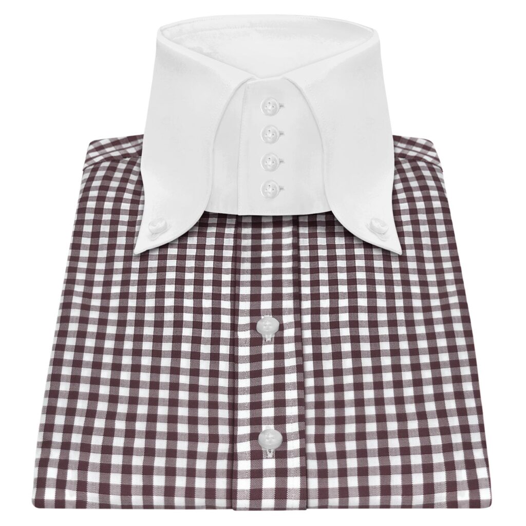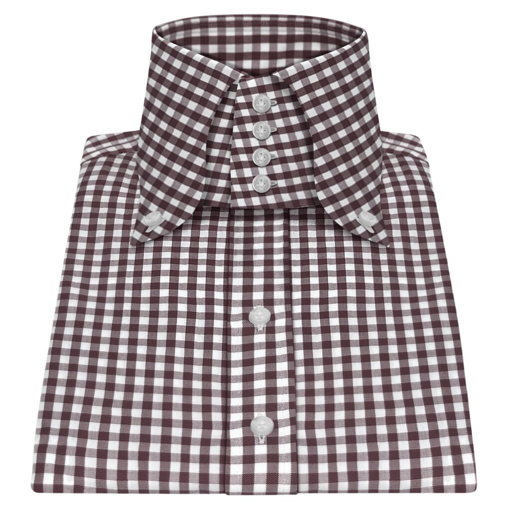 Sea Blue Gingham Checks High Button Down 4 Button Collar