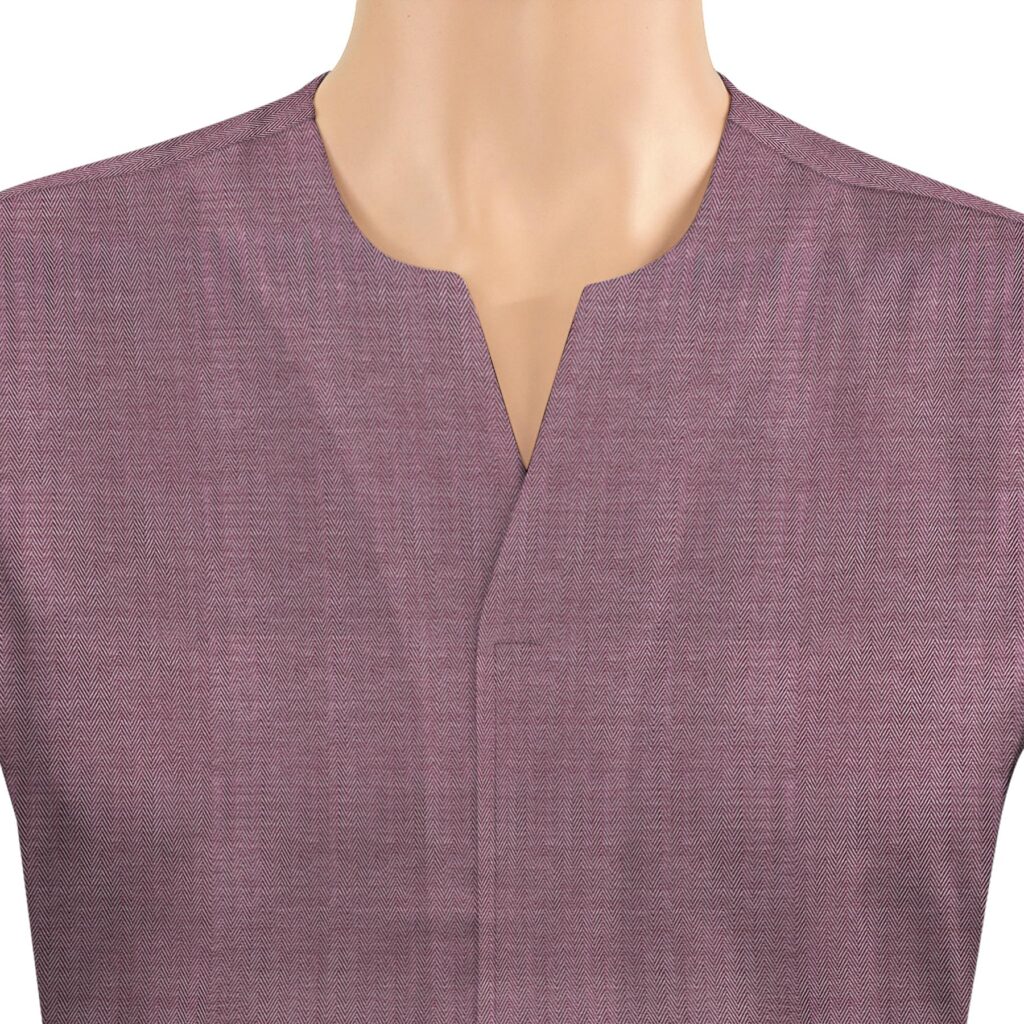 Black Purple Herringbone Stripes Collarless Open V Neck