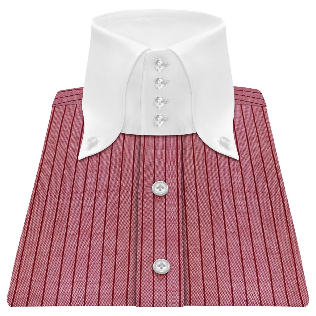 Maroon Wide Stripes High Button Down 2 Button Collar