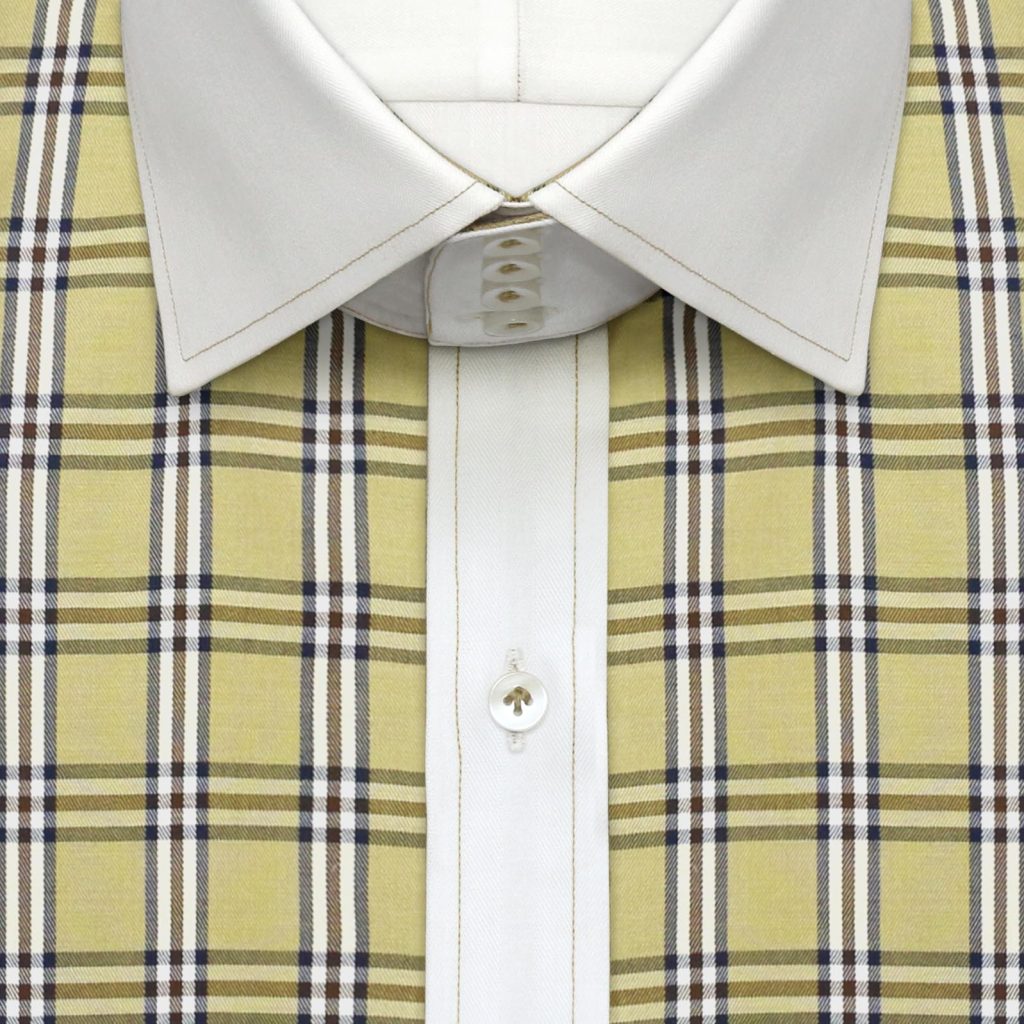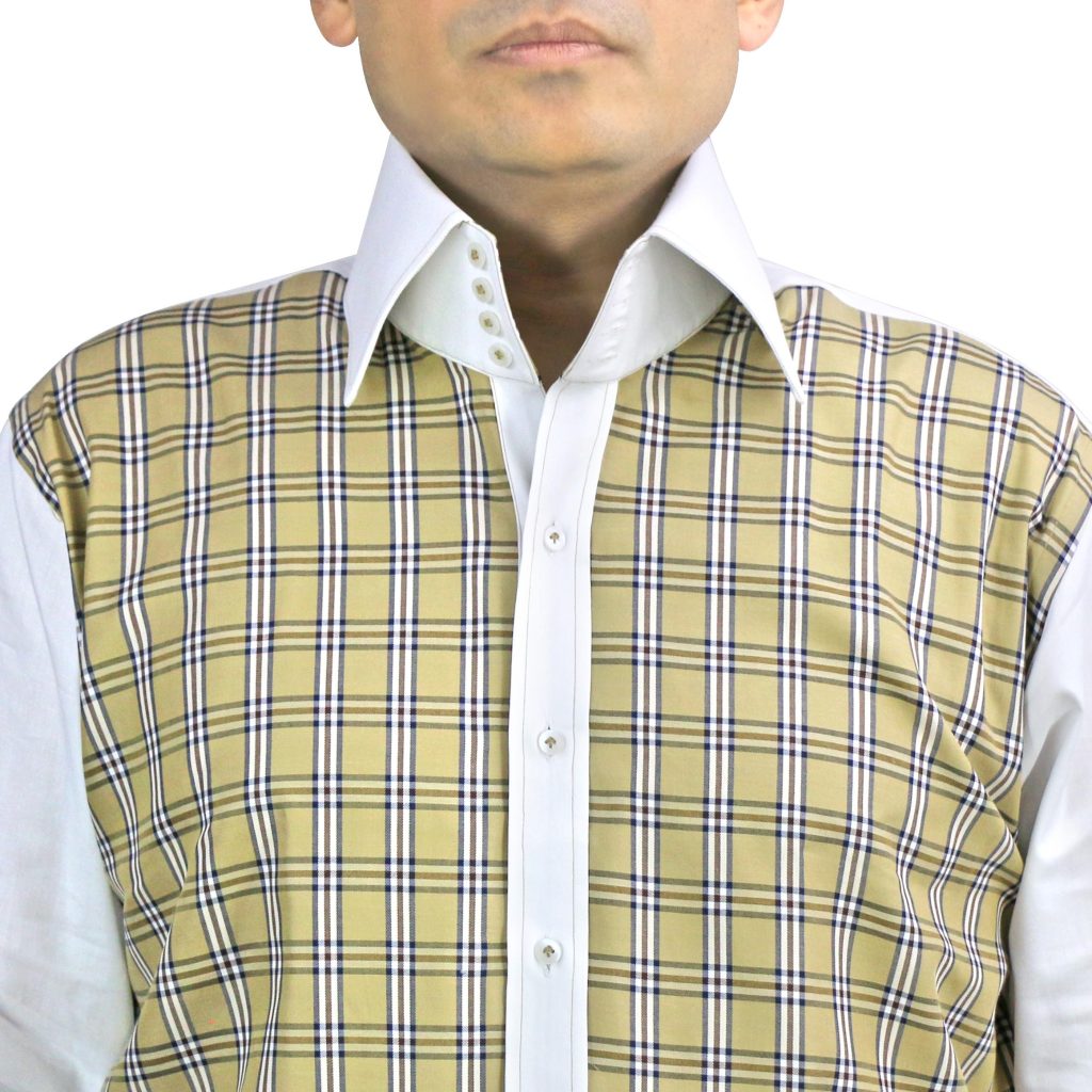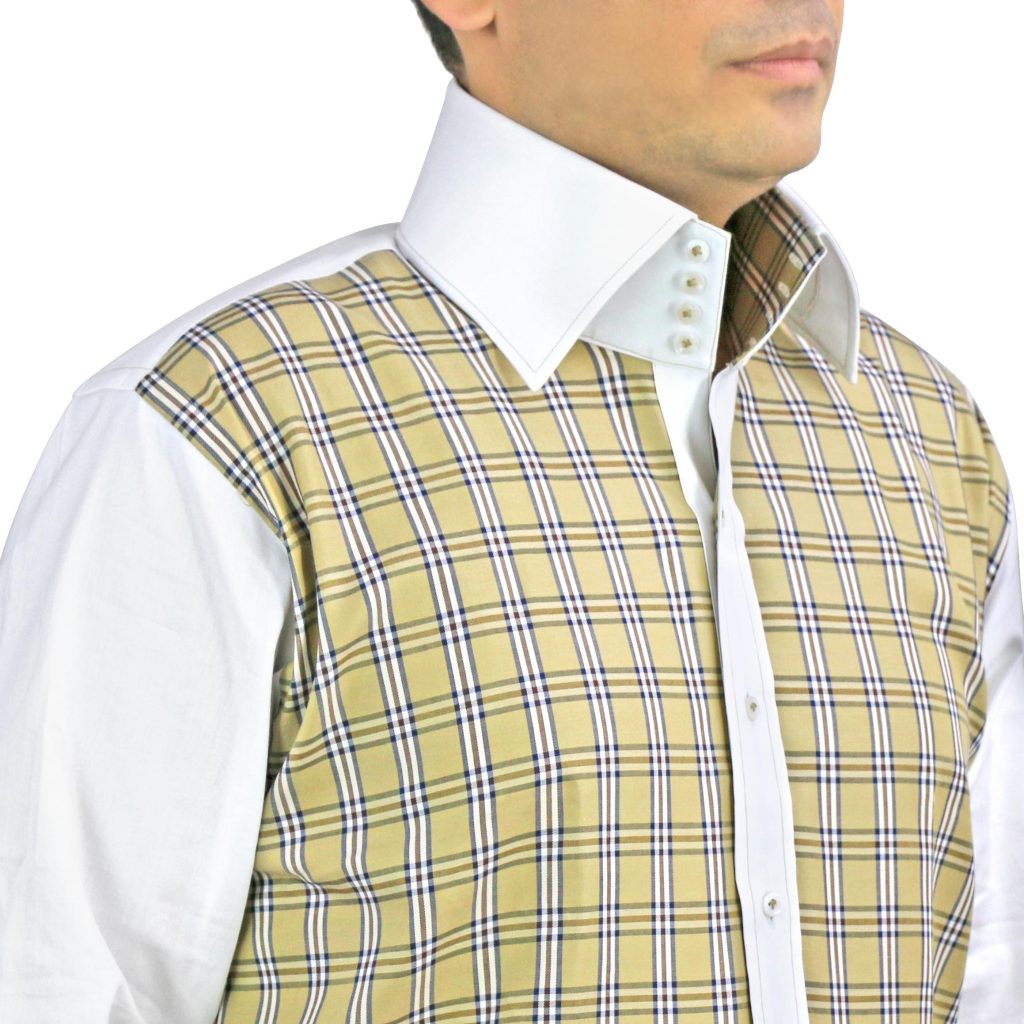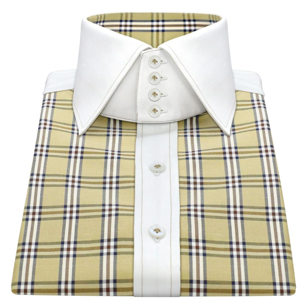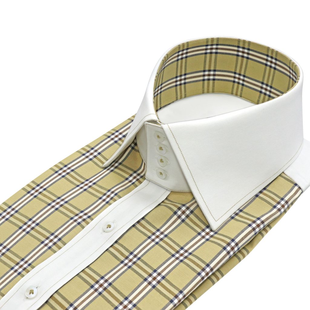 Mix n Match Blue Burberry Checks High Spread 4 Button Collar