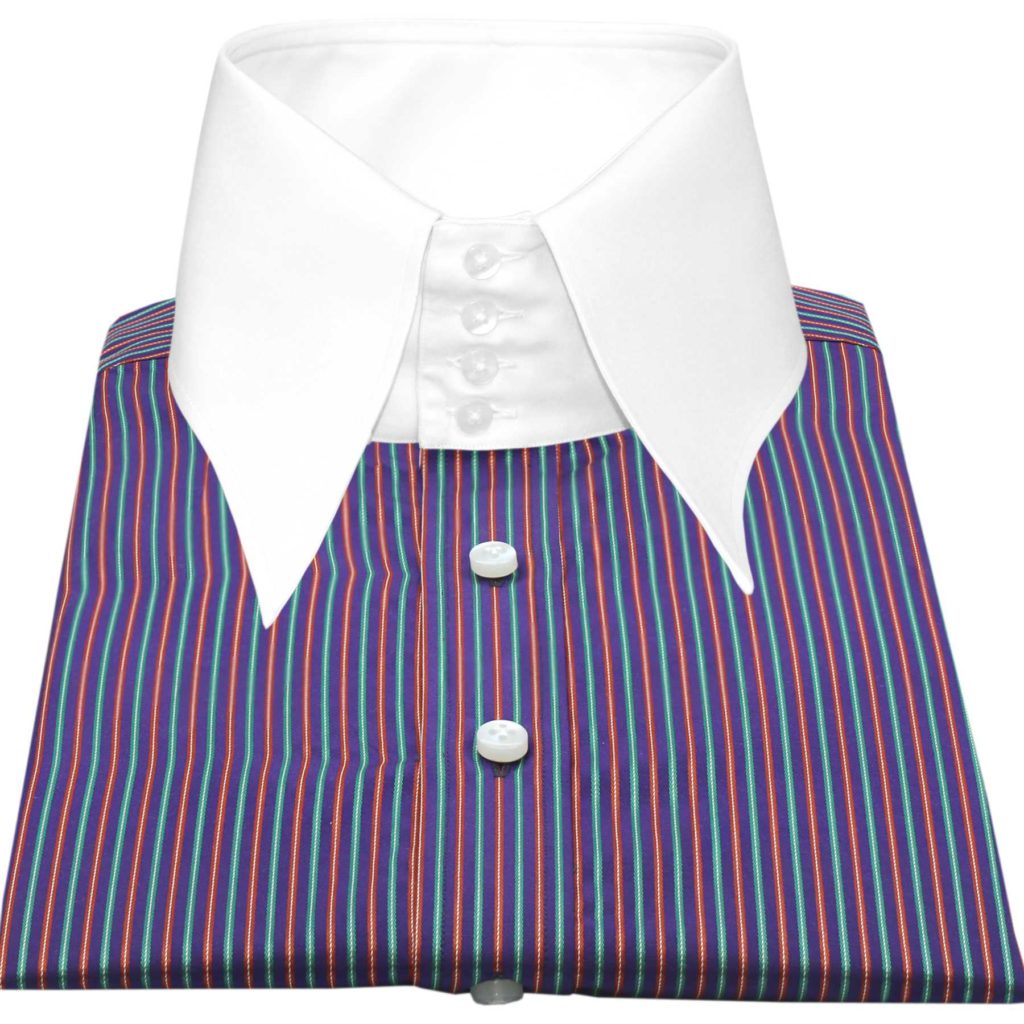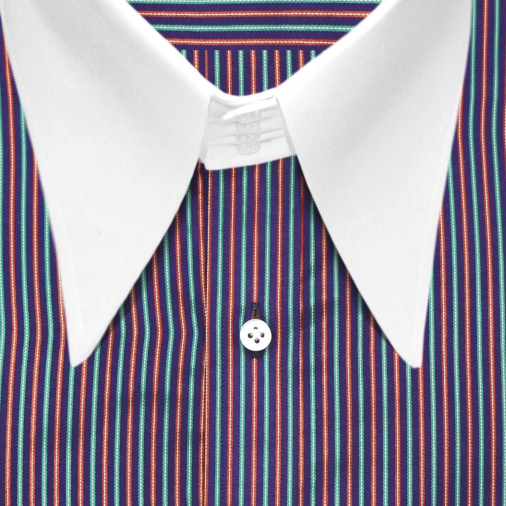 Blue Stripes High Long Point 4 Button Collar Hidden Placket