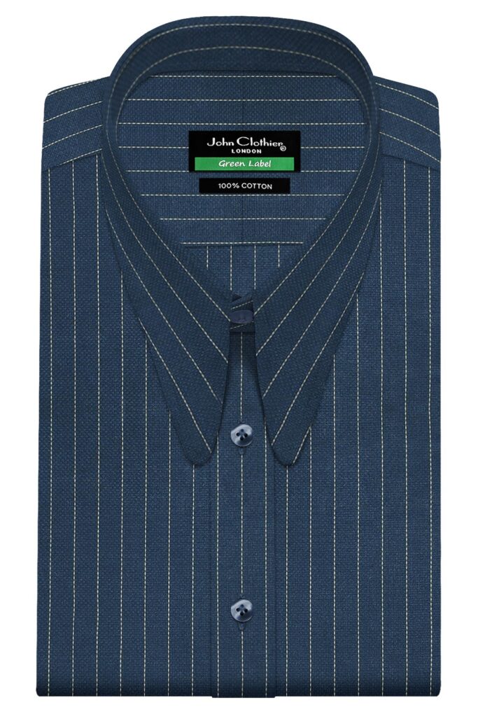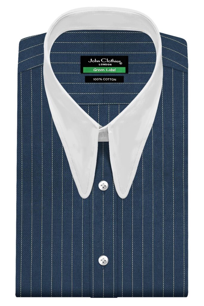 Navy Blue Chalk Stripes Long Round Tip Collar