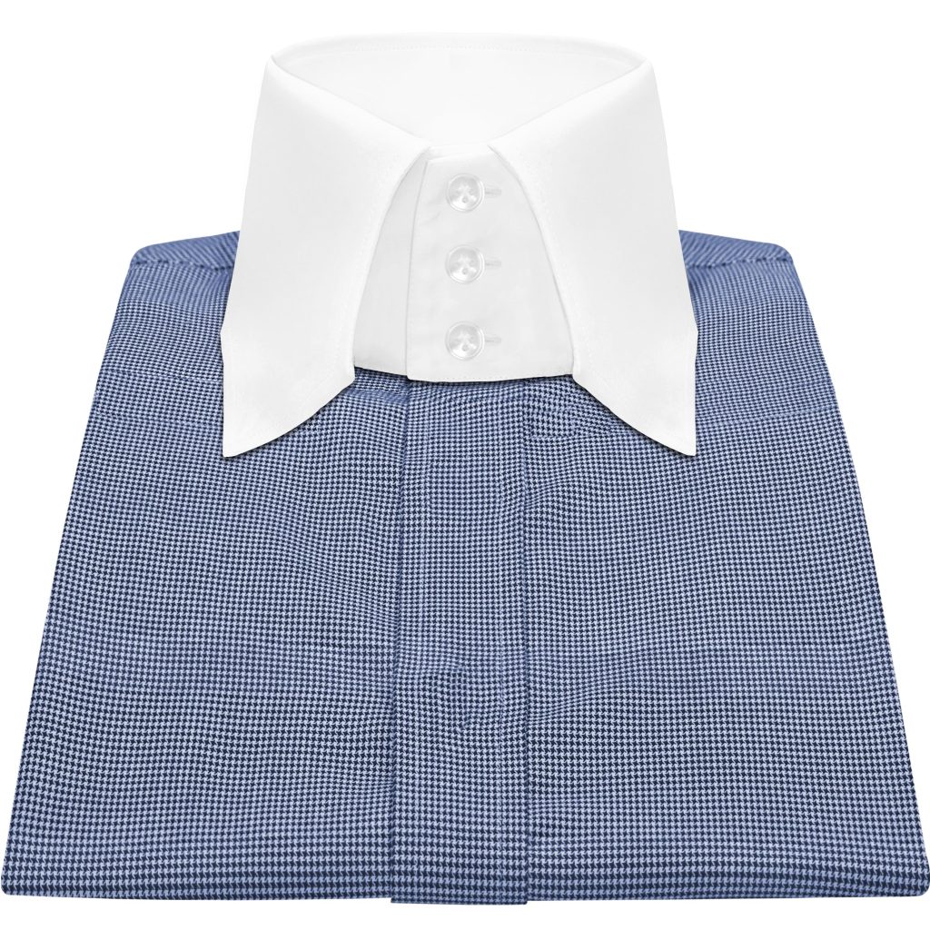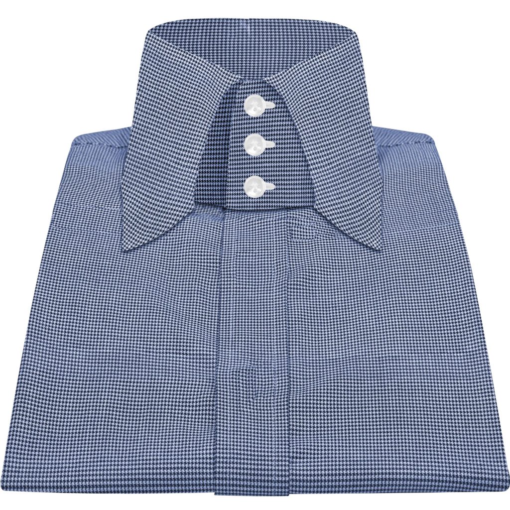 Navy Blue Dogstooth High Button Down 4 Button Collar