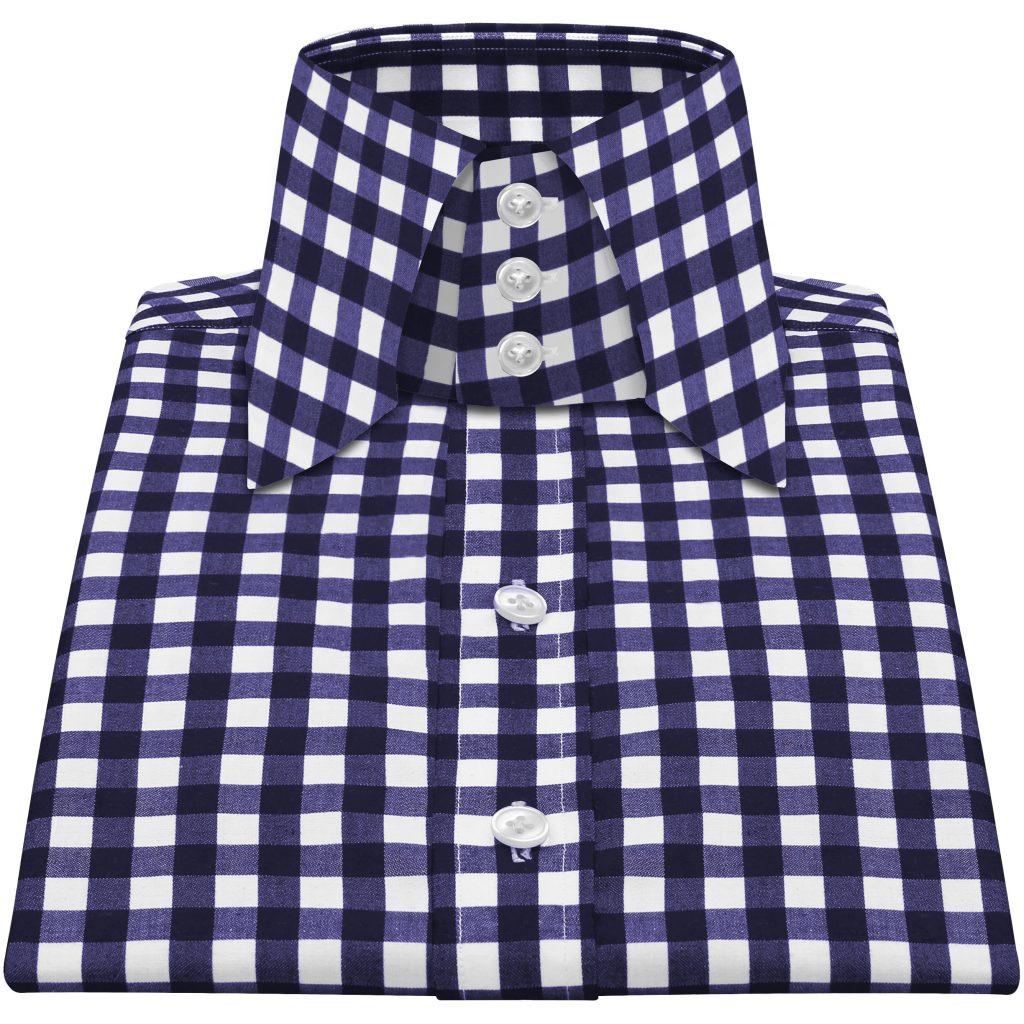 Navy Blue Gingham Checks High Button Down 4 Button Collar