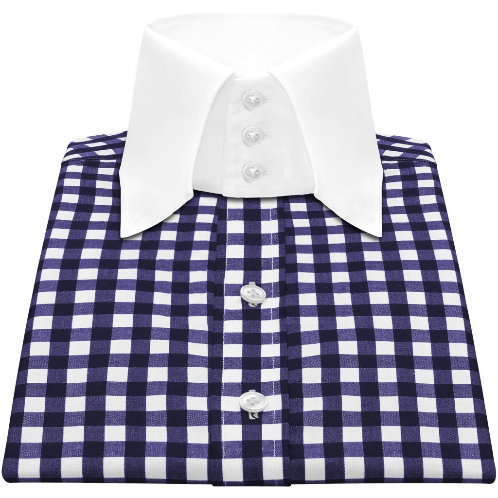 Navy Blue Gingham Checks High Cutaway 2 Button Collar