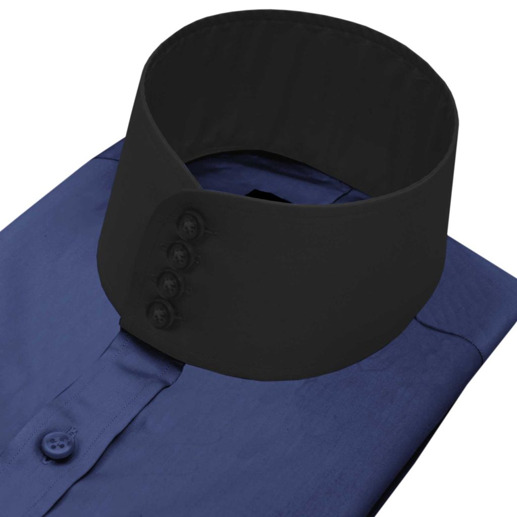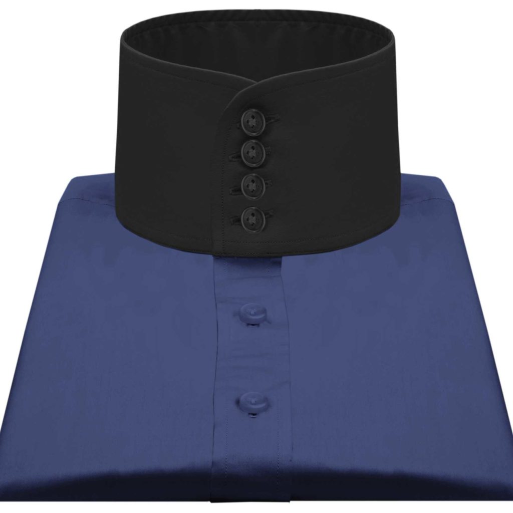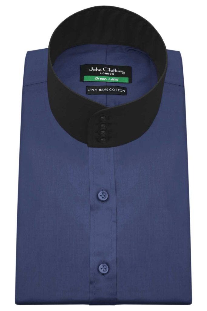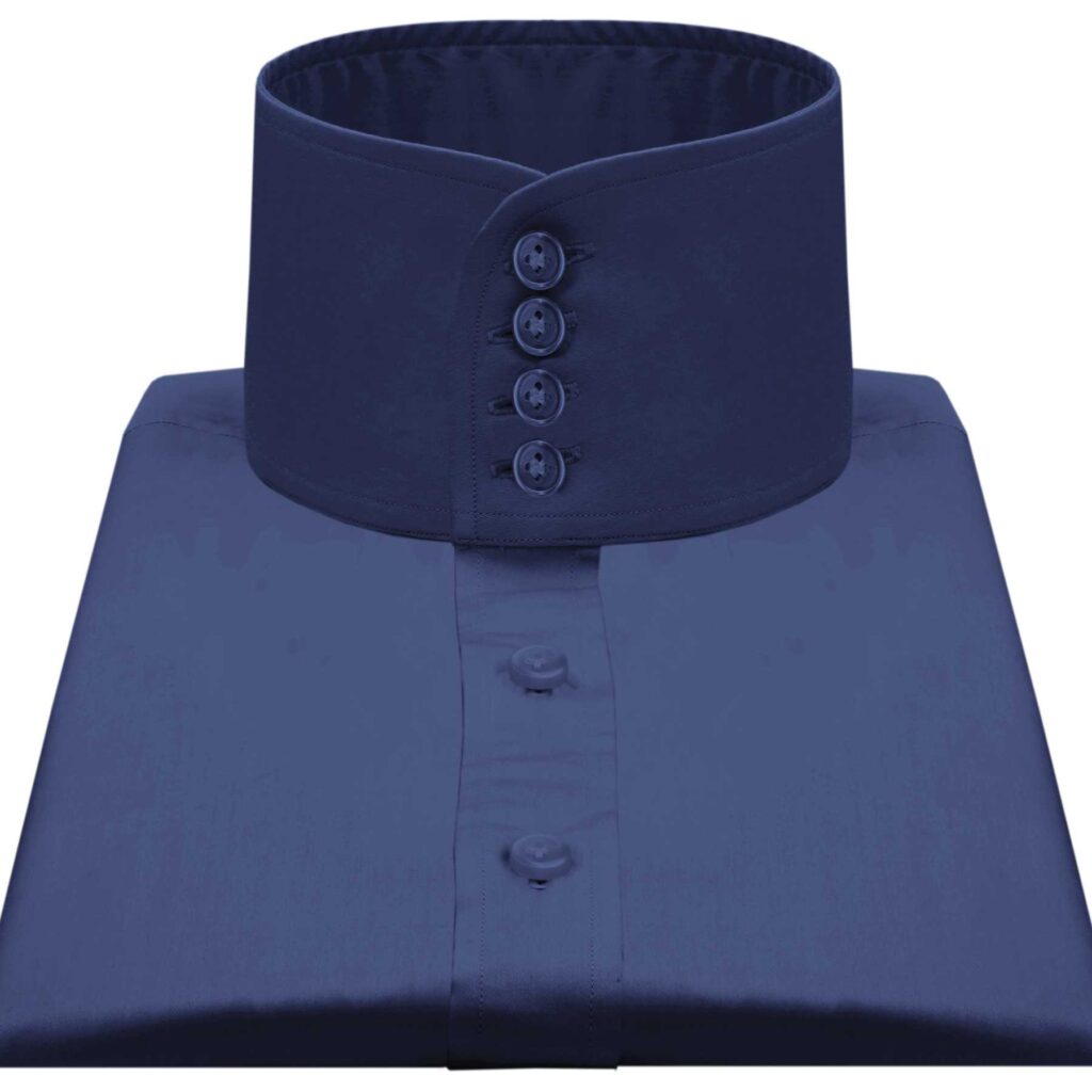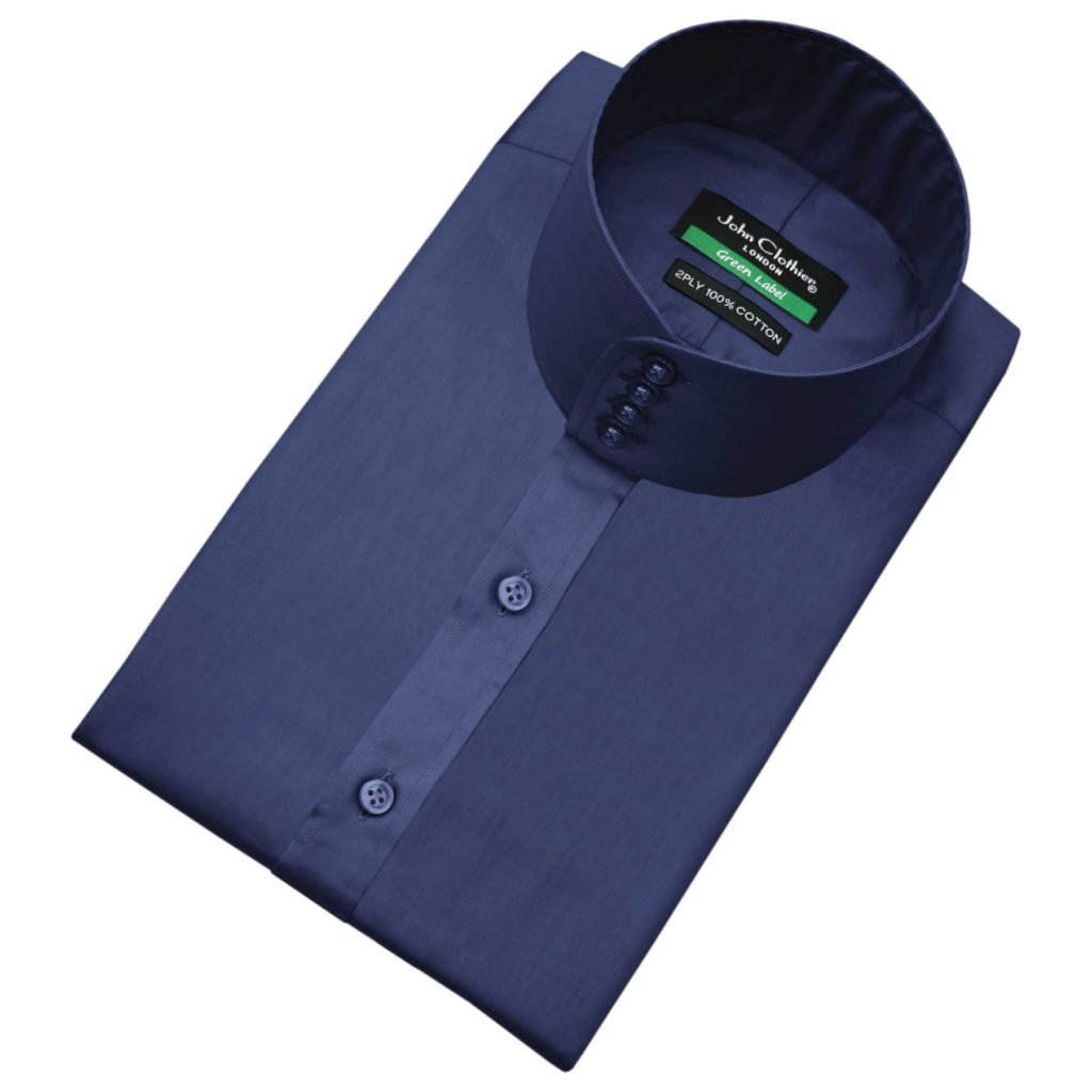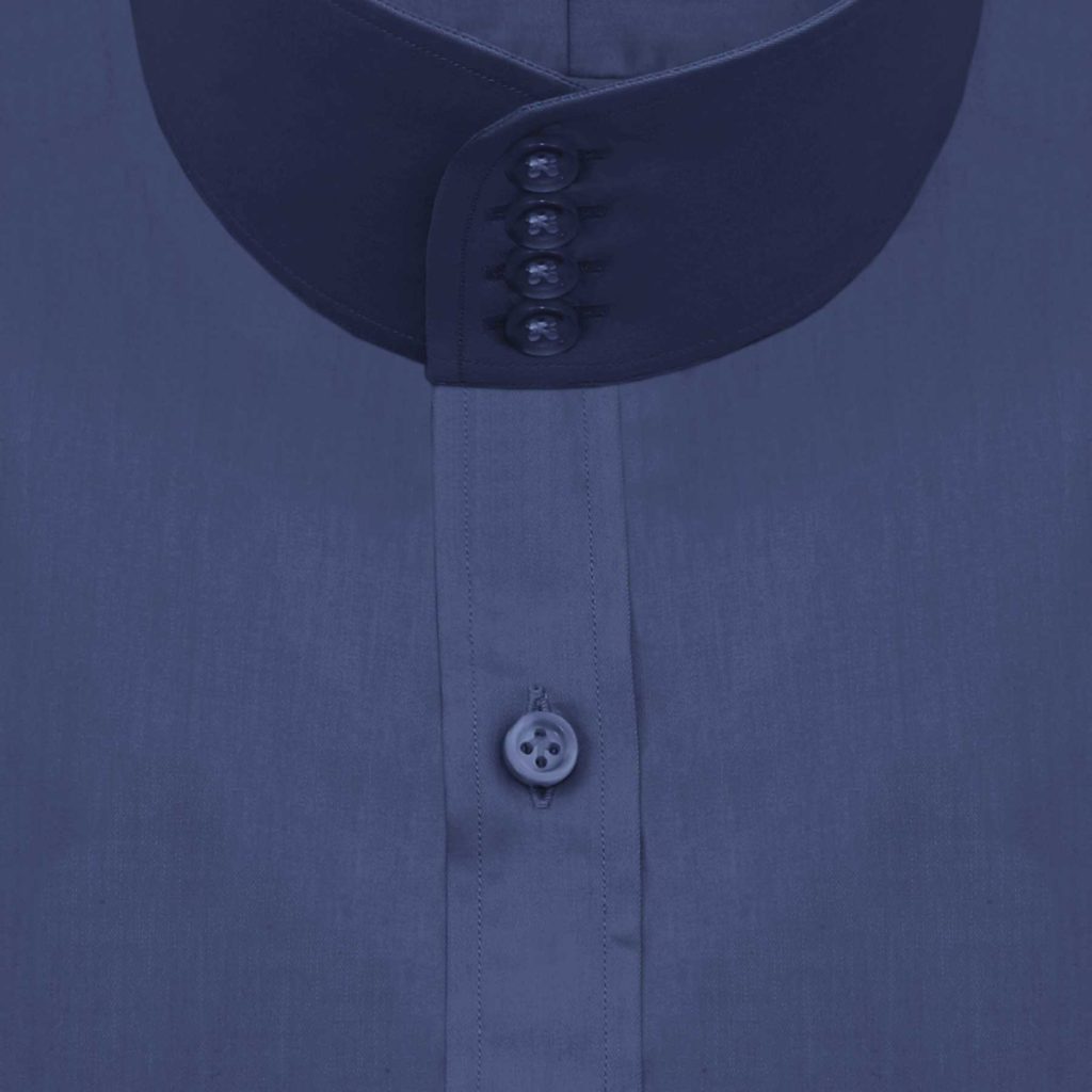 Navy Blue High Band 4 Button Collar Hidden Placket