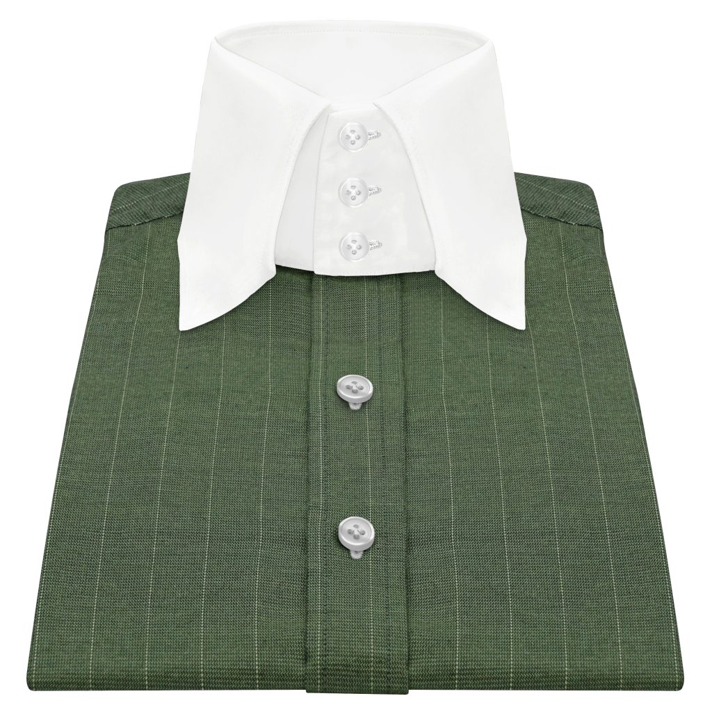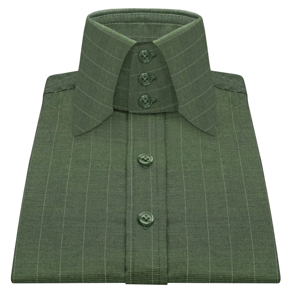 Olive Green Chalk Stripes High Button Down 4 Button Collar