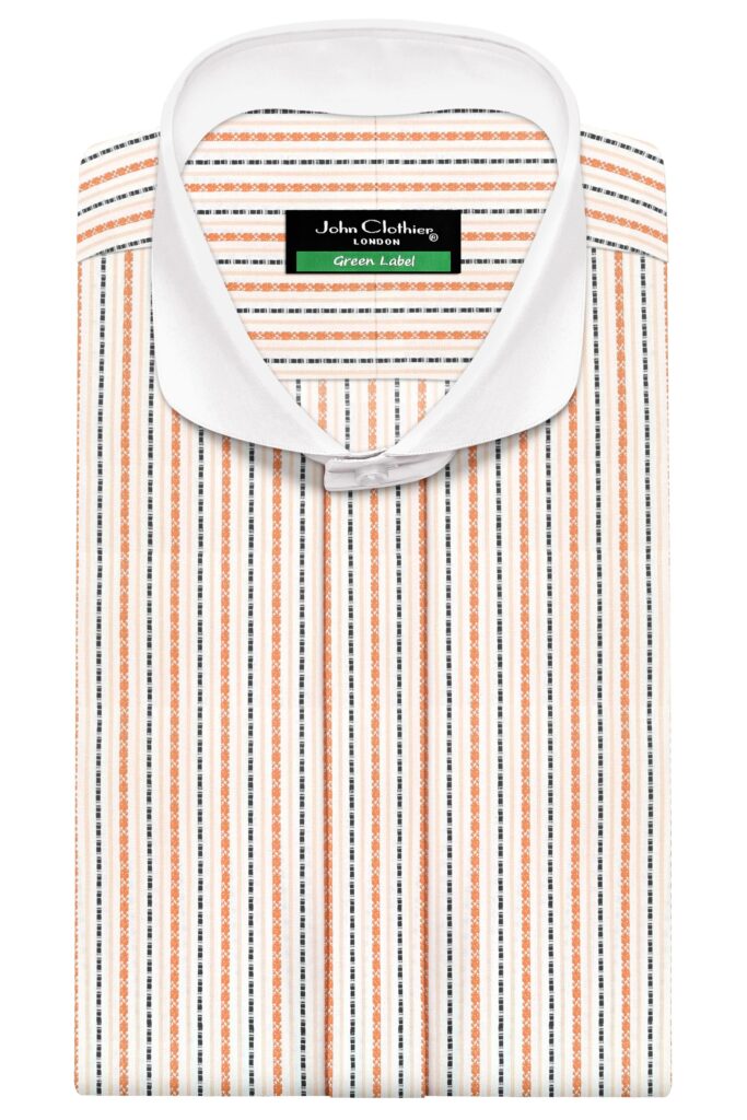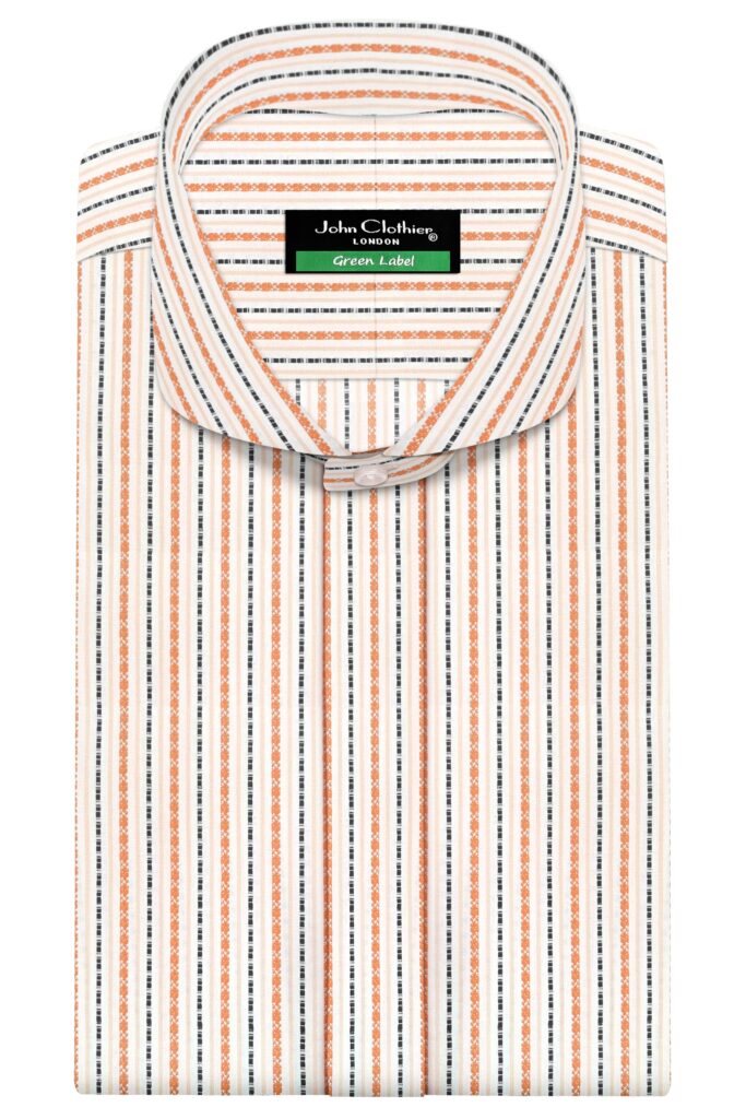 Blue Brown Jacquard Stripes Cutaway Penny Collar