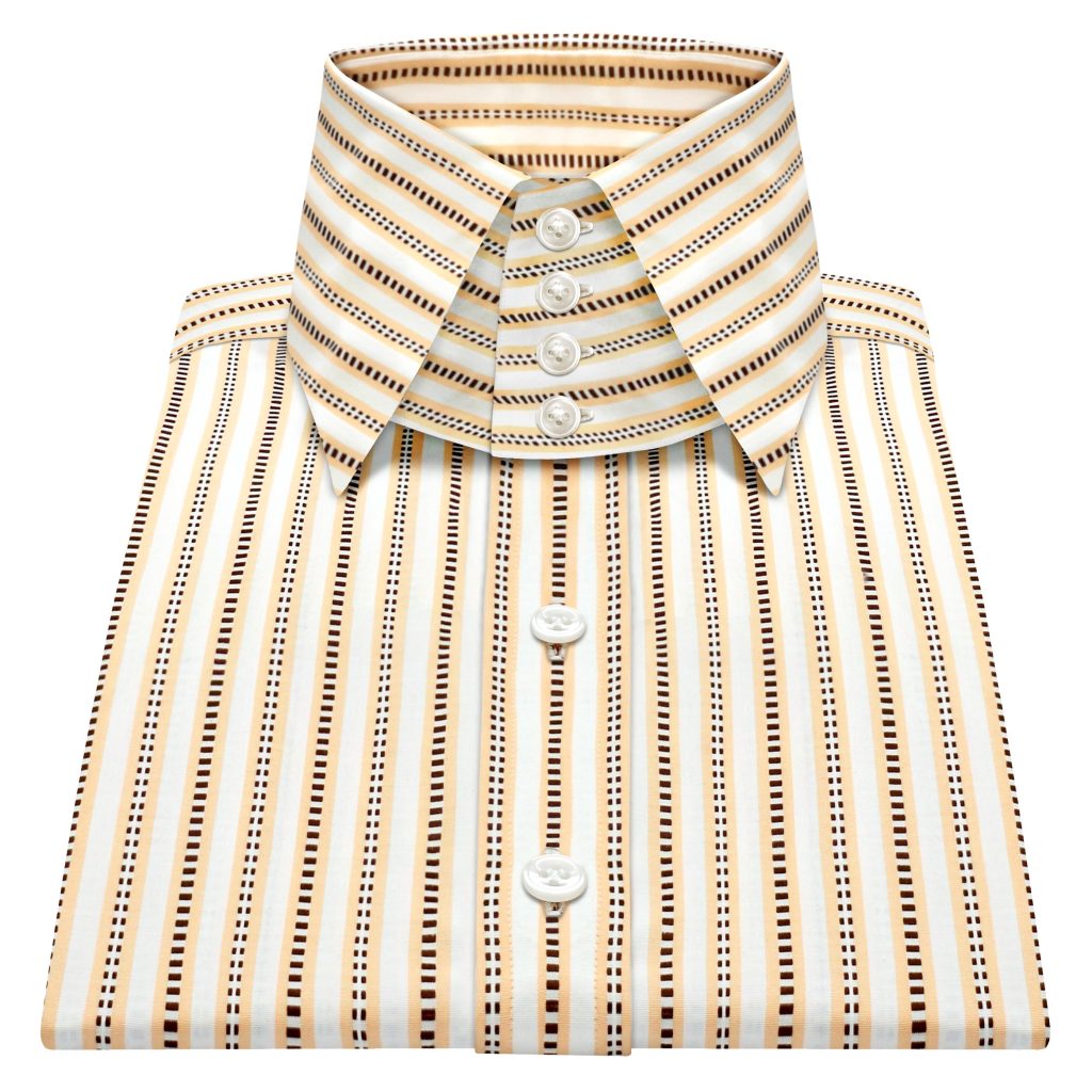 Olive Lime Dot Stripes High Spread 4 Button Collar