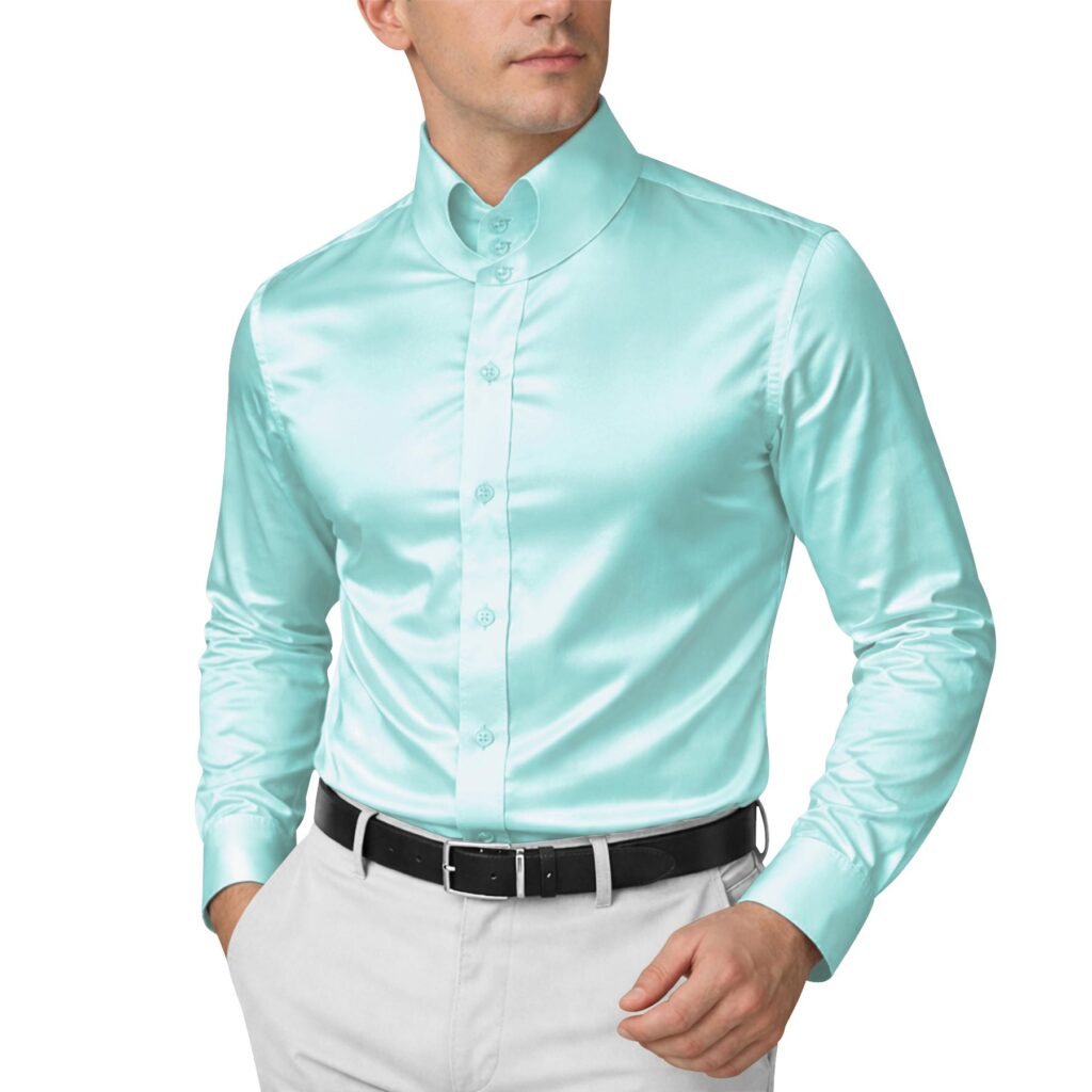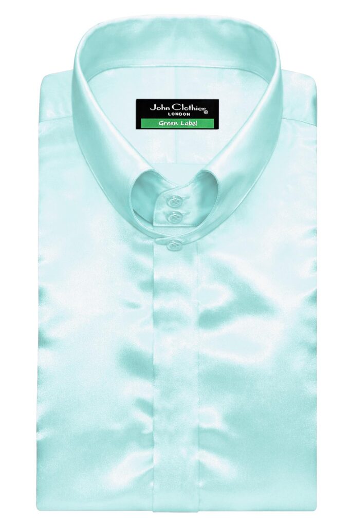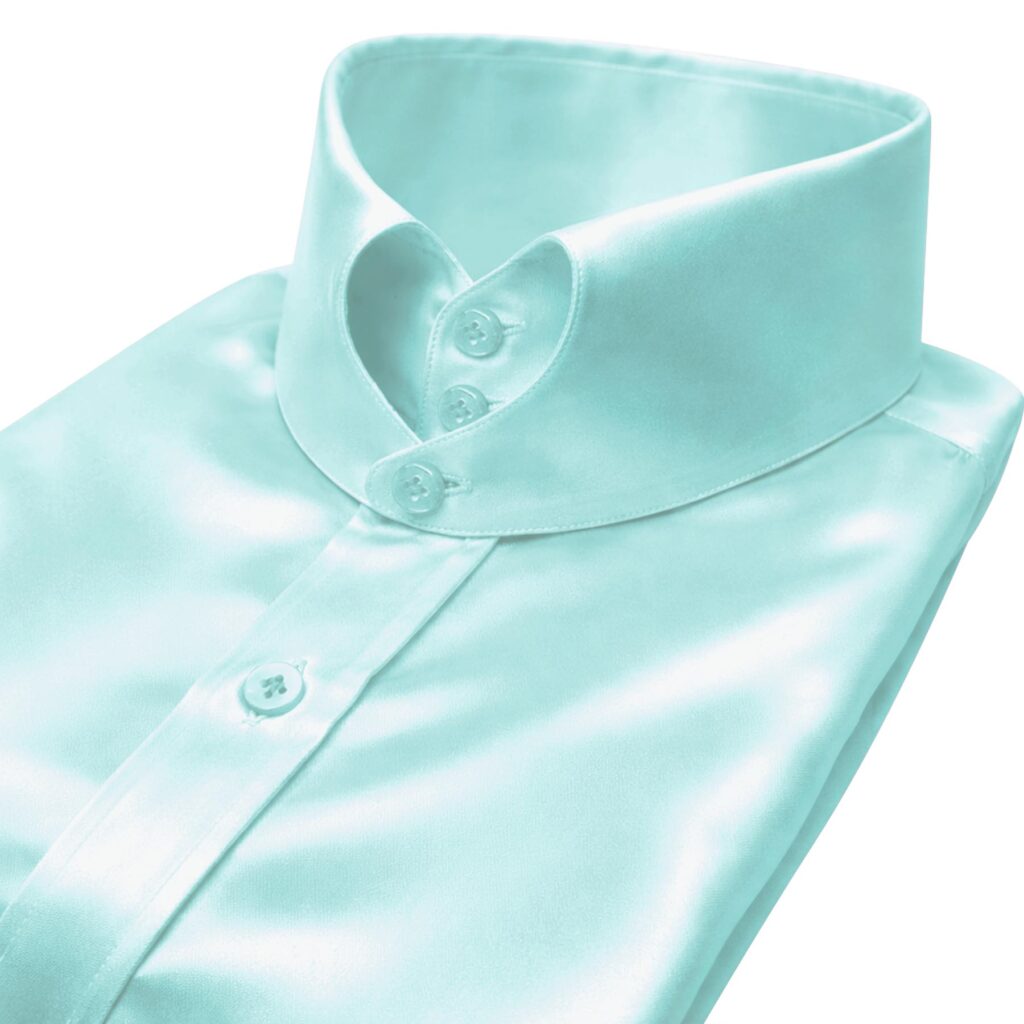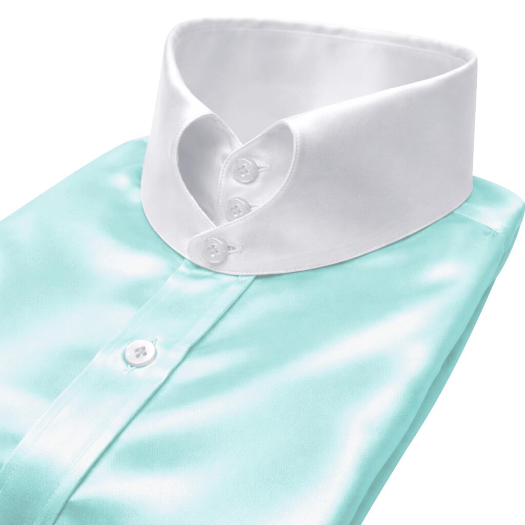 Pastel Blue Silky Satin High Heart Shape 2 Button Tab Collar