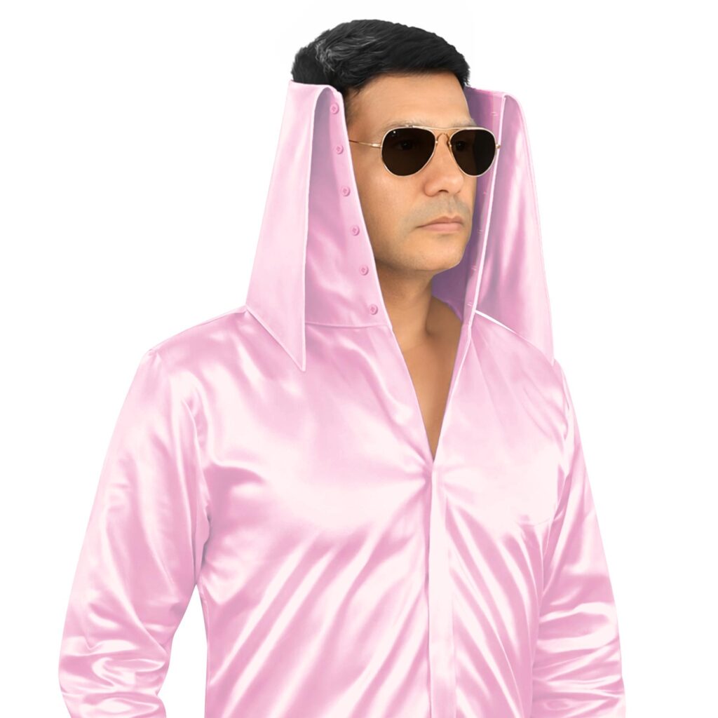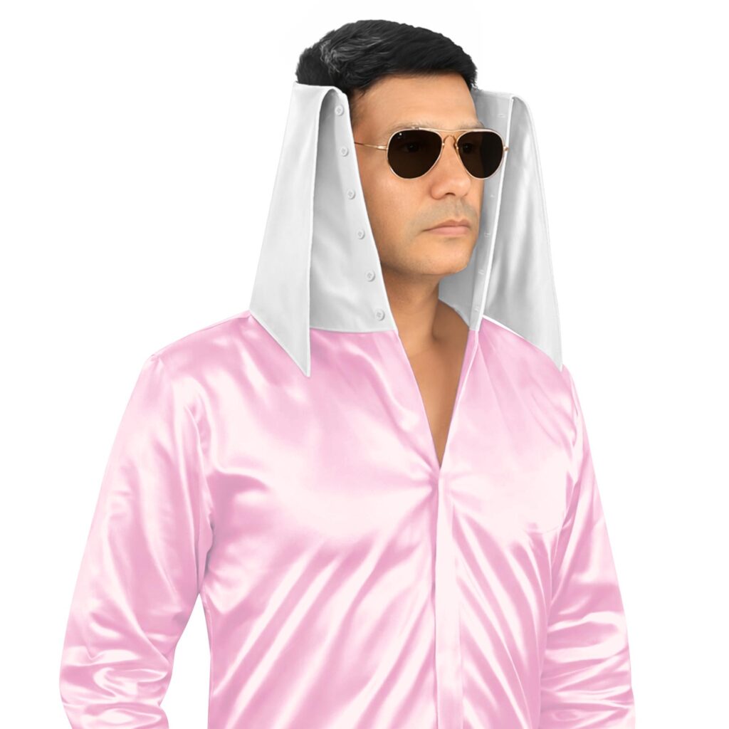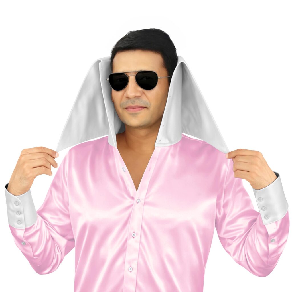 Pearl Pink Silky Satin High Long 2 Button Collar