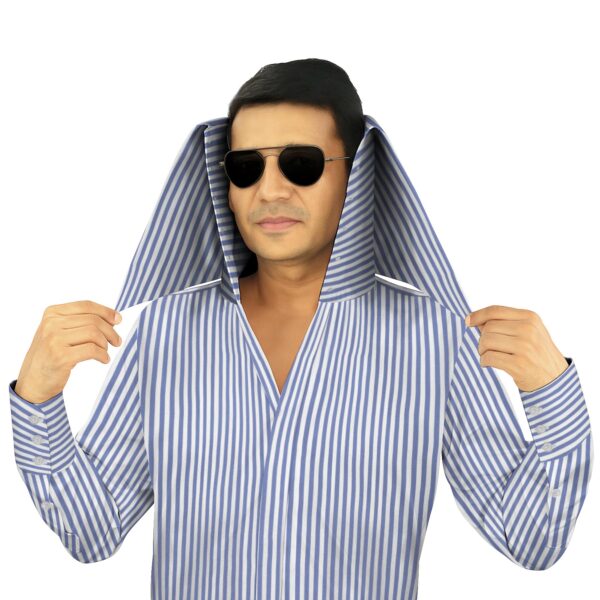 Royal Blue & Beige Stripes High Long Round Tip 2 Button Collar