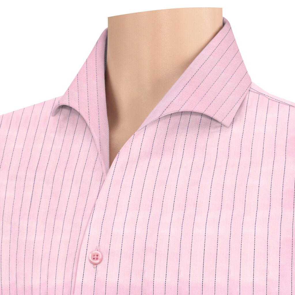 Sky Blue Chalk Stripes High Spread 2 Button Collar