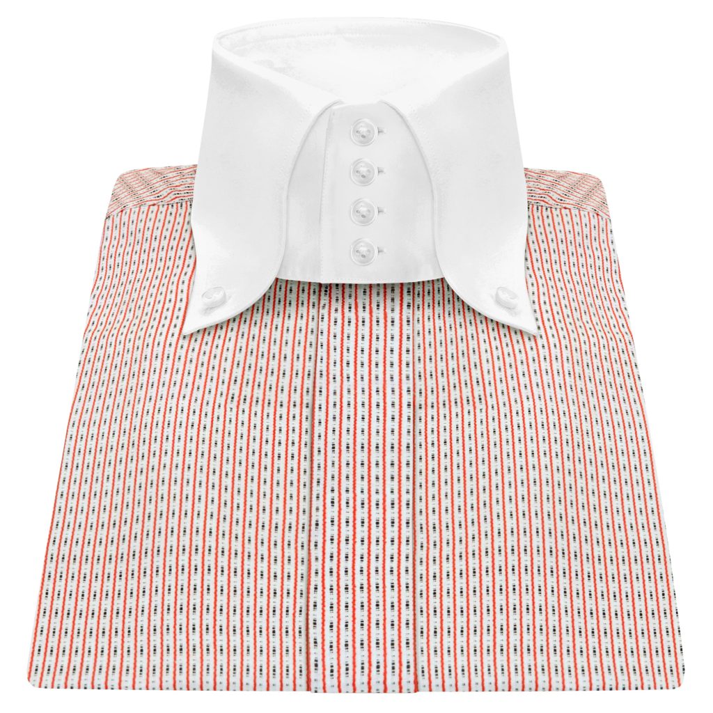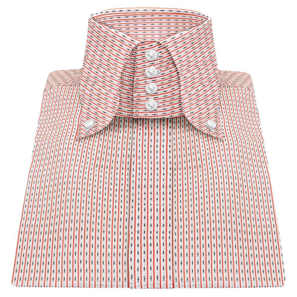 Orange Black Pinstripes High Button Down 4 Button Collar