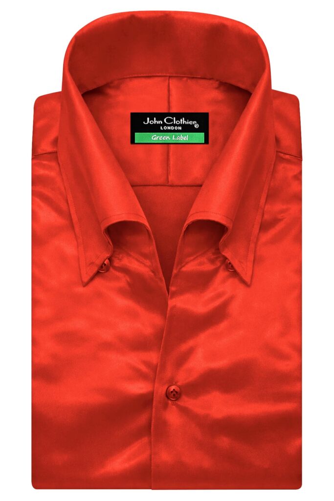 White Silky Satin High Open Rainbow Button Down Collar