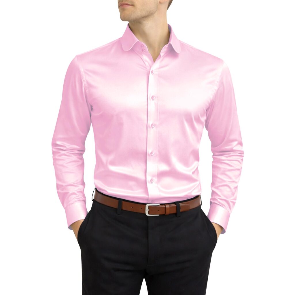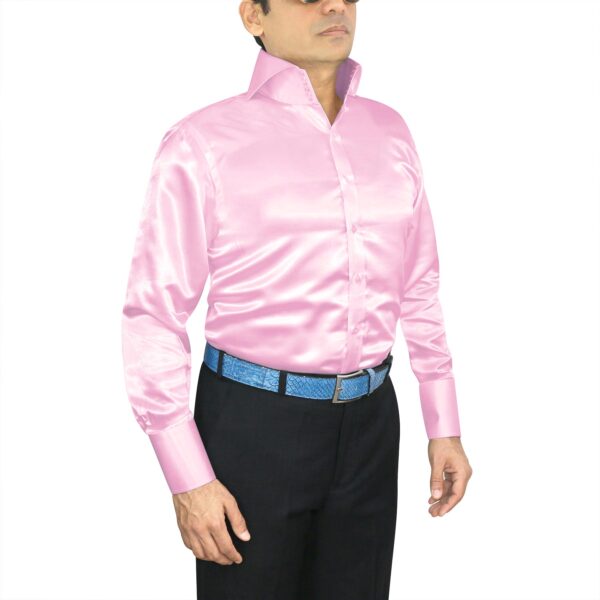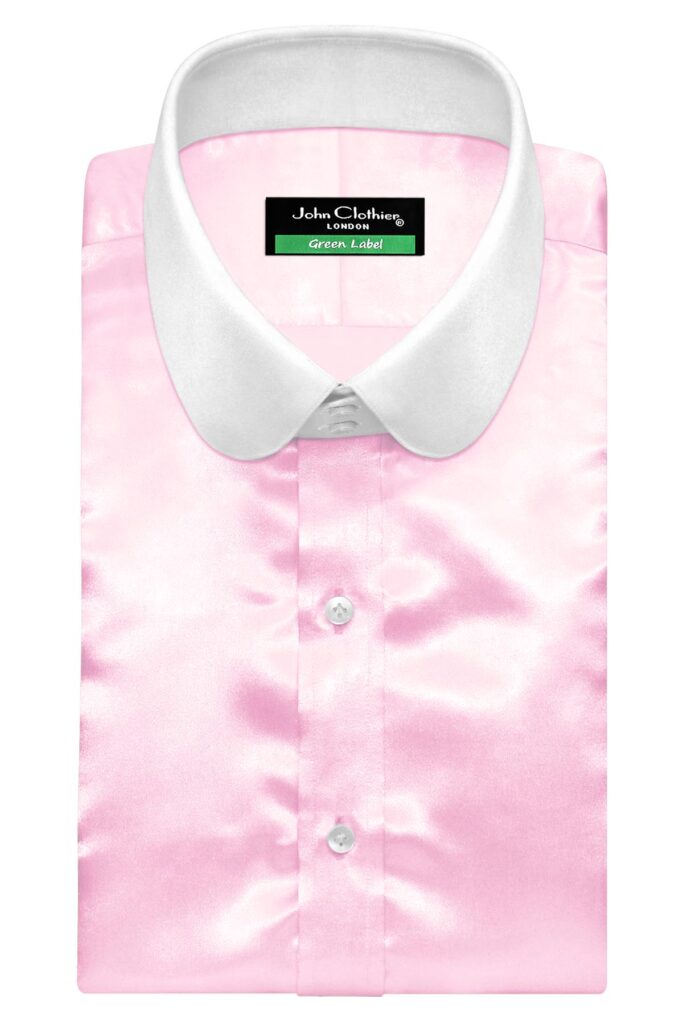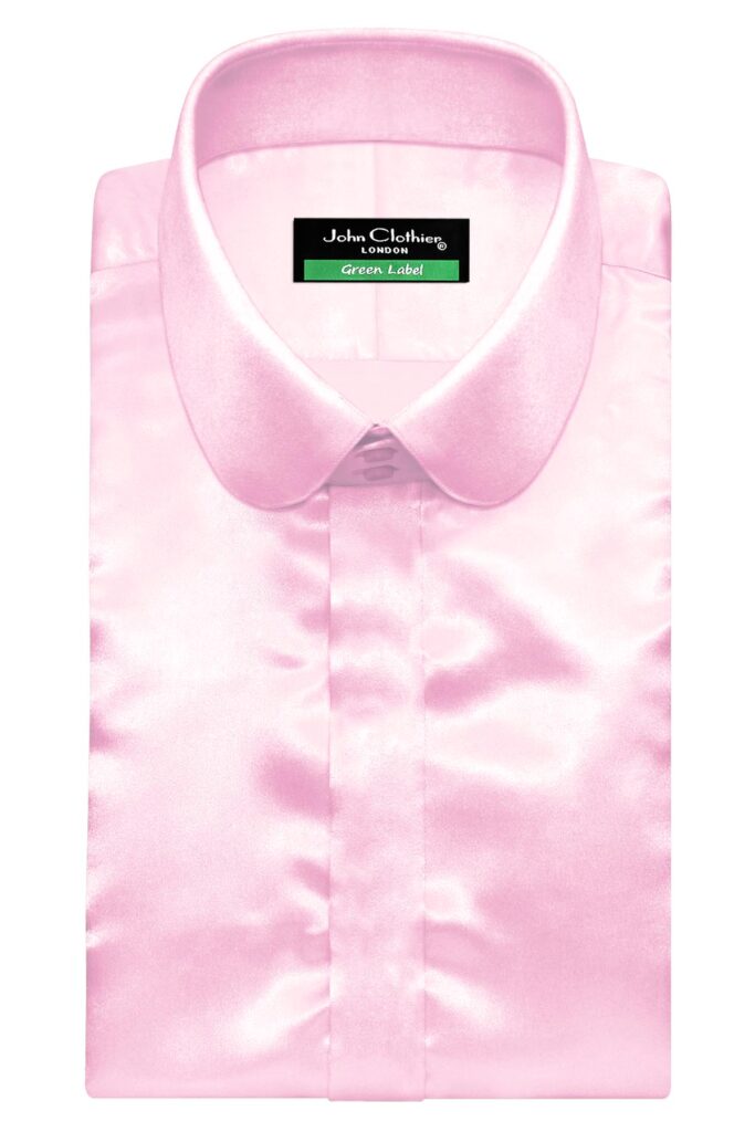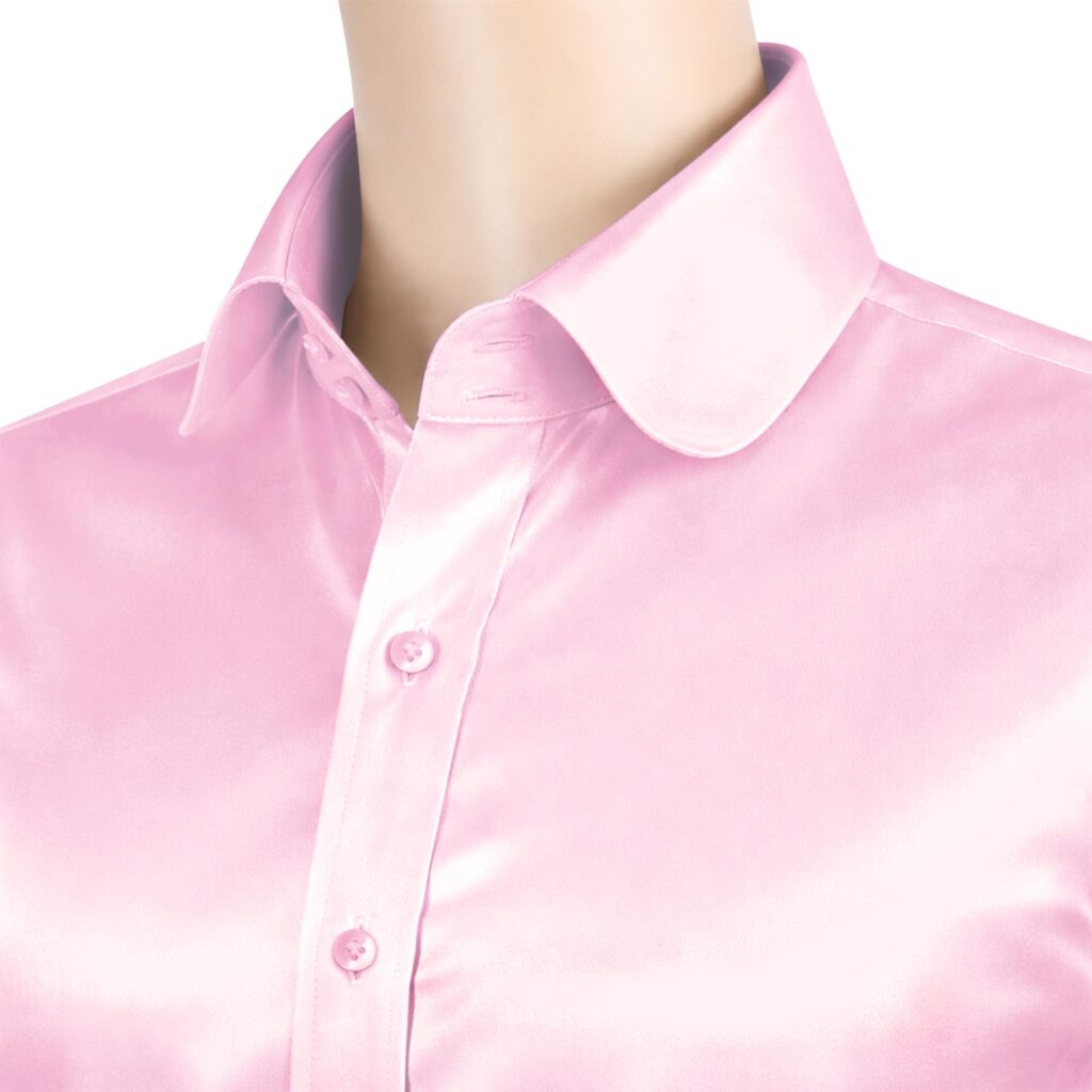 Rose Pink Silky Satin High Penny 2 Button Collar