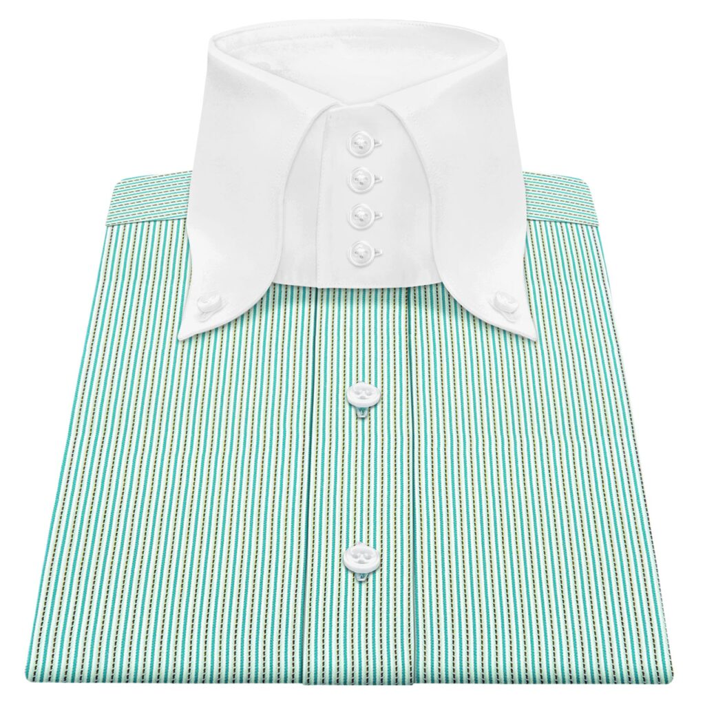 Beige Green Stitch Stripes High Button Down 4 Button Collar