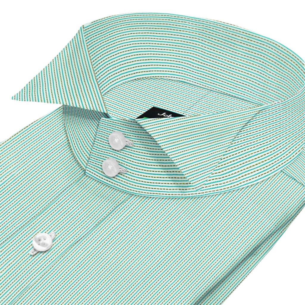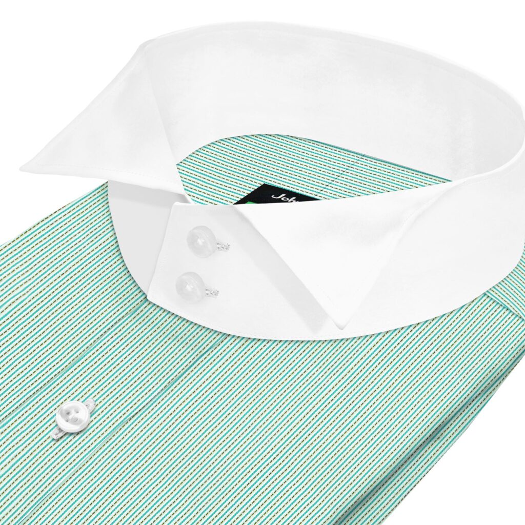 Beige Green Stitch Pinstripes High Wing 2 Button Collar