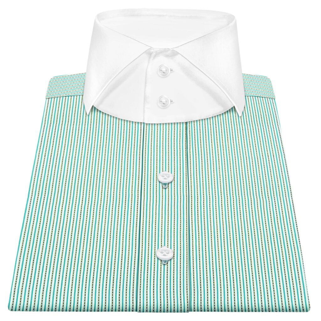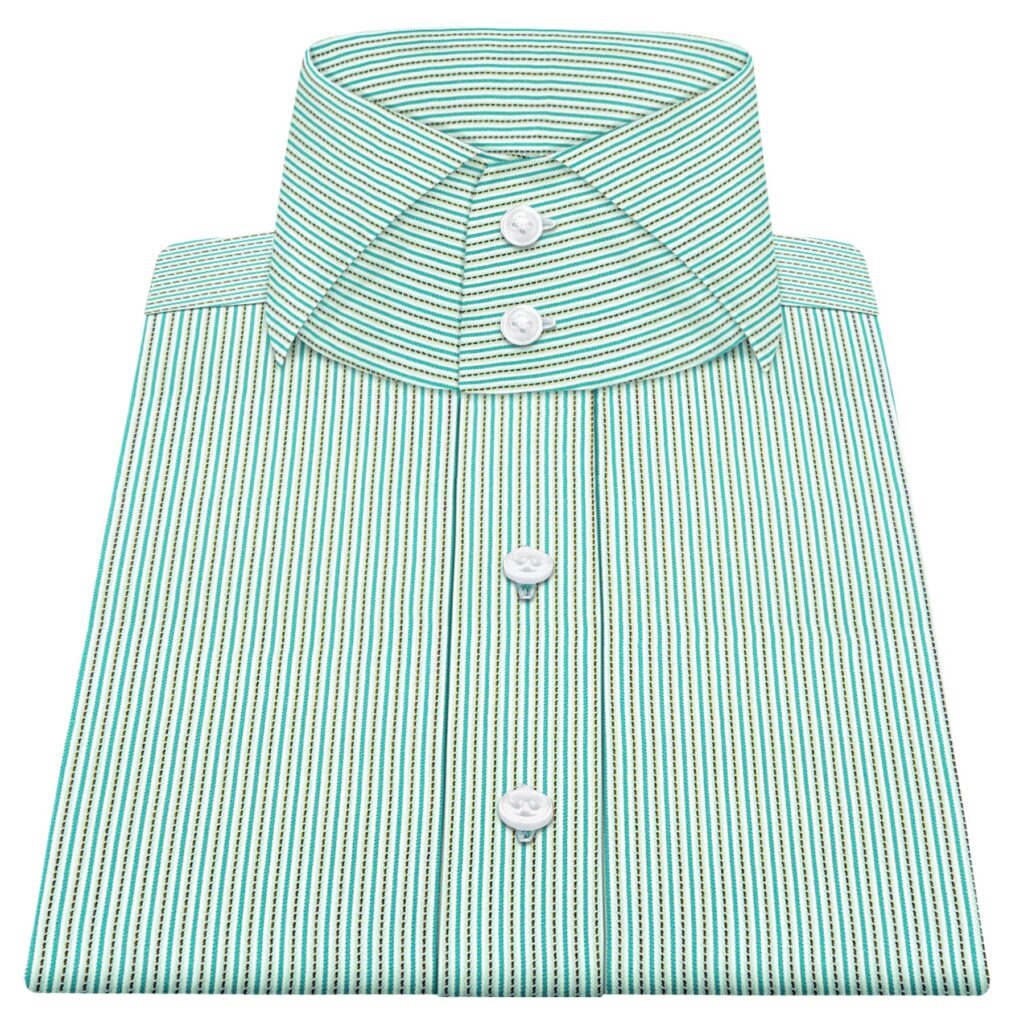 Beige Green Stitch Stripes High Cutaway 2 Button Collar
