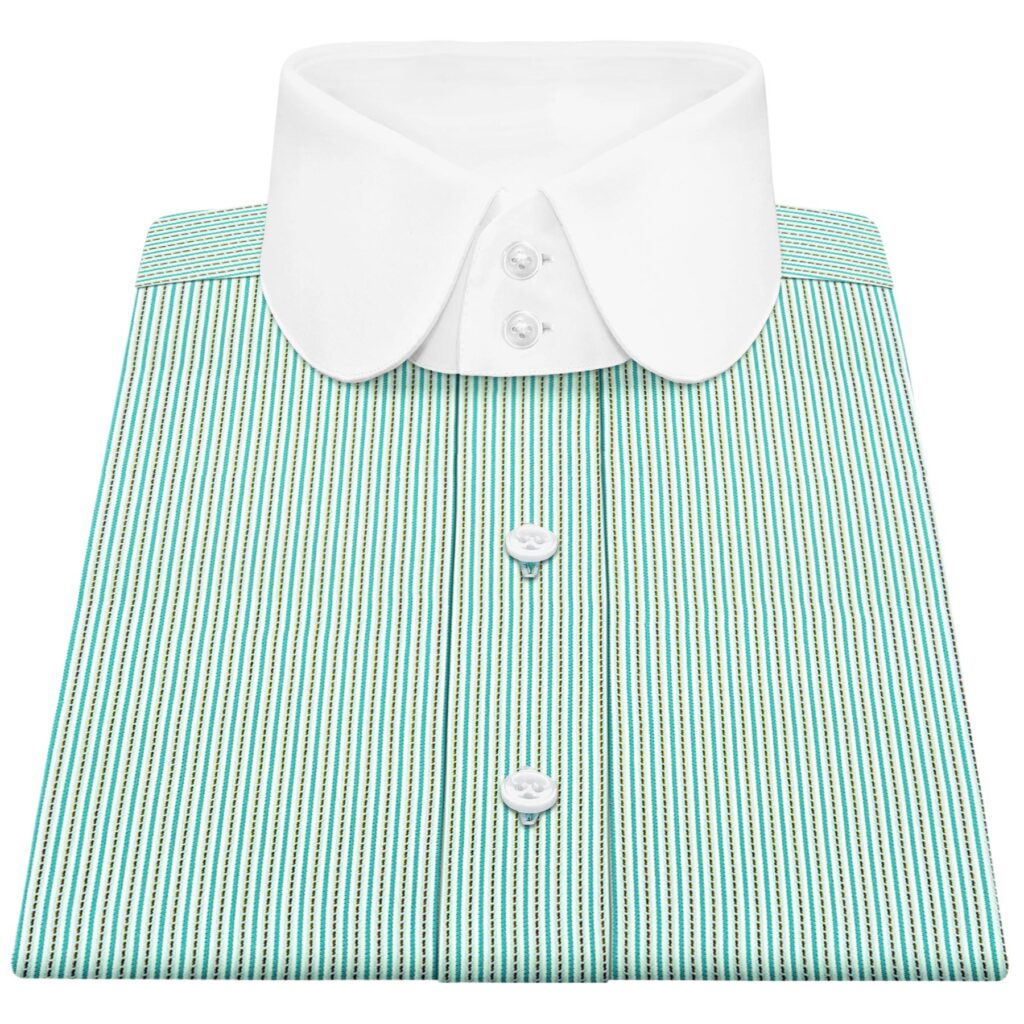 Beige Green Stitch Stripes High Penny 2 Button Collar