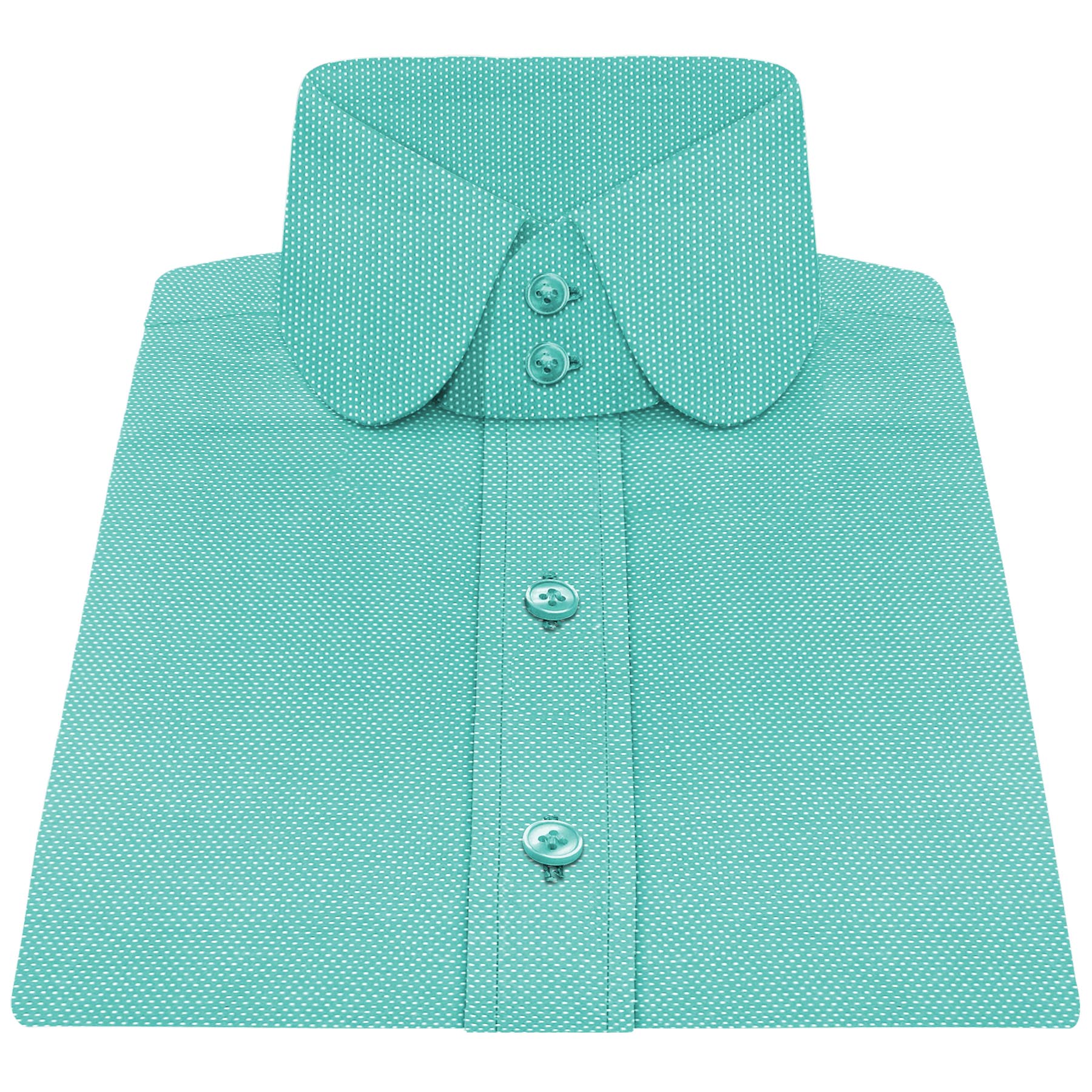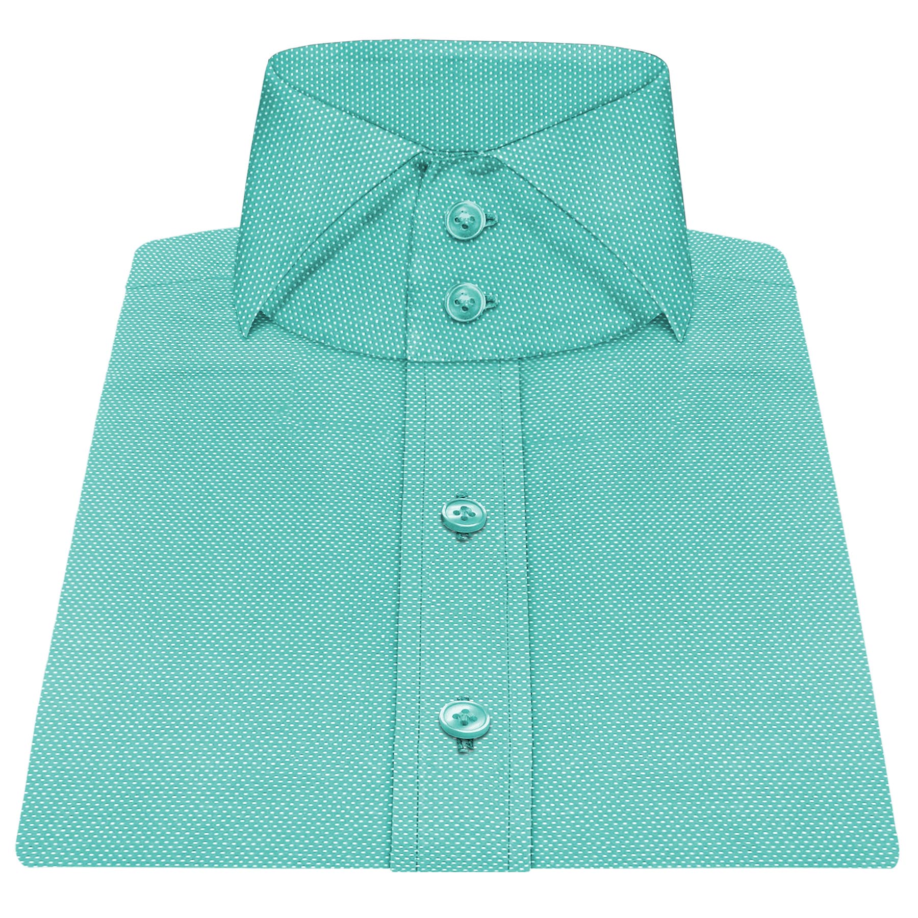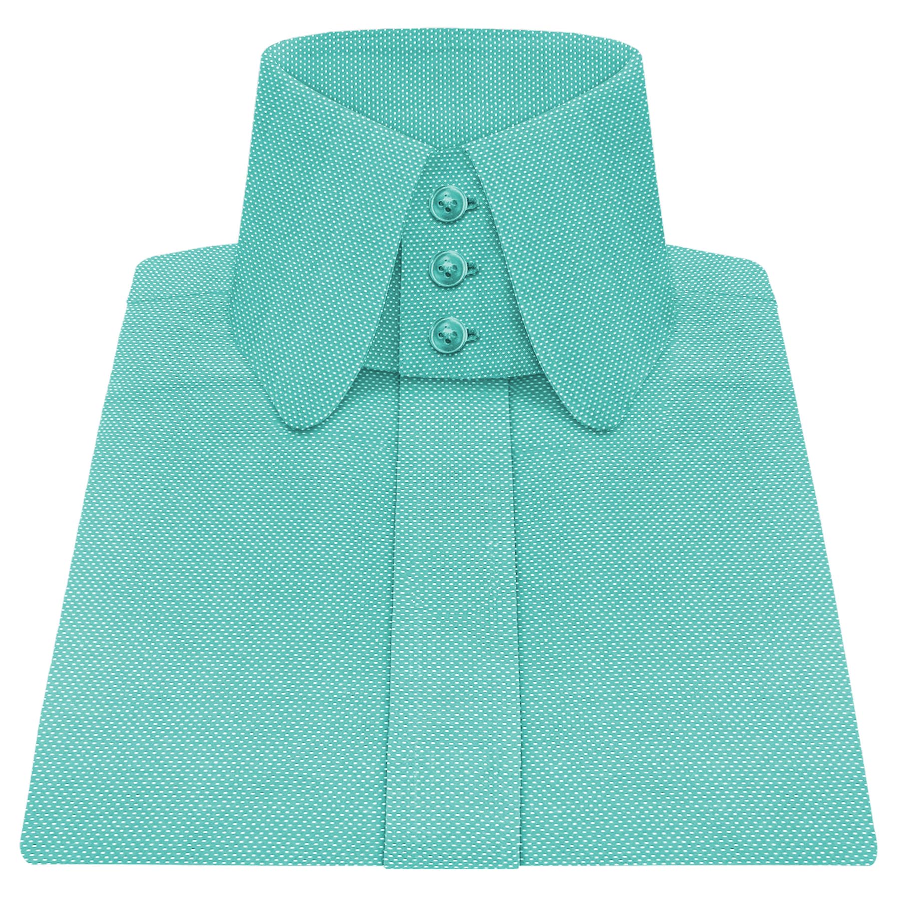 Olive Green White Dots High Long Point 6 Button Collar