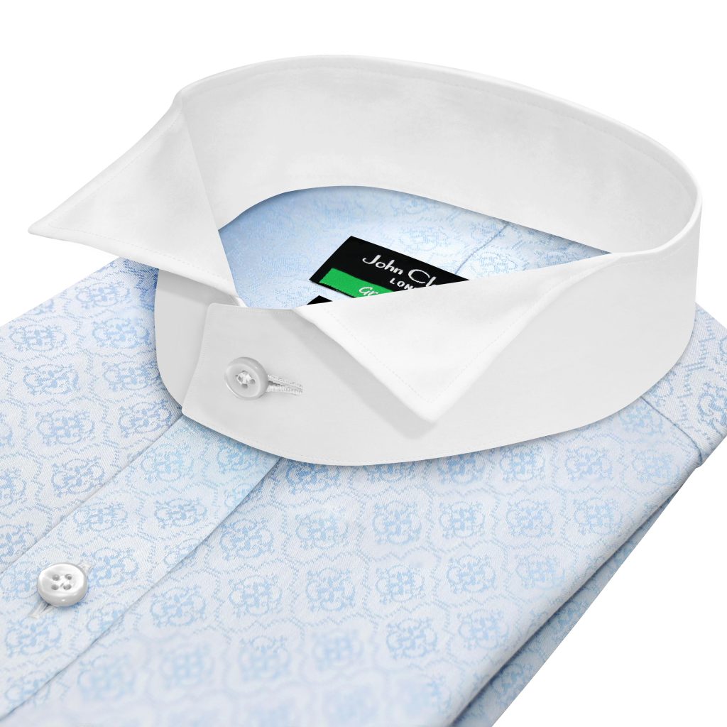 This wing tip collar is designed to be worn with a bow tie.