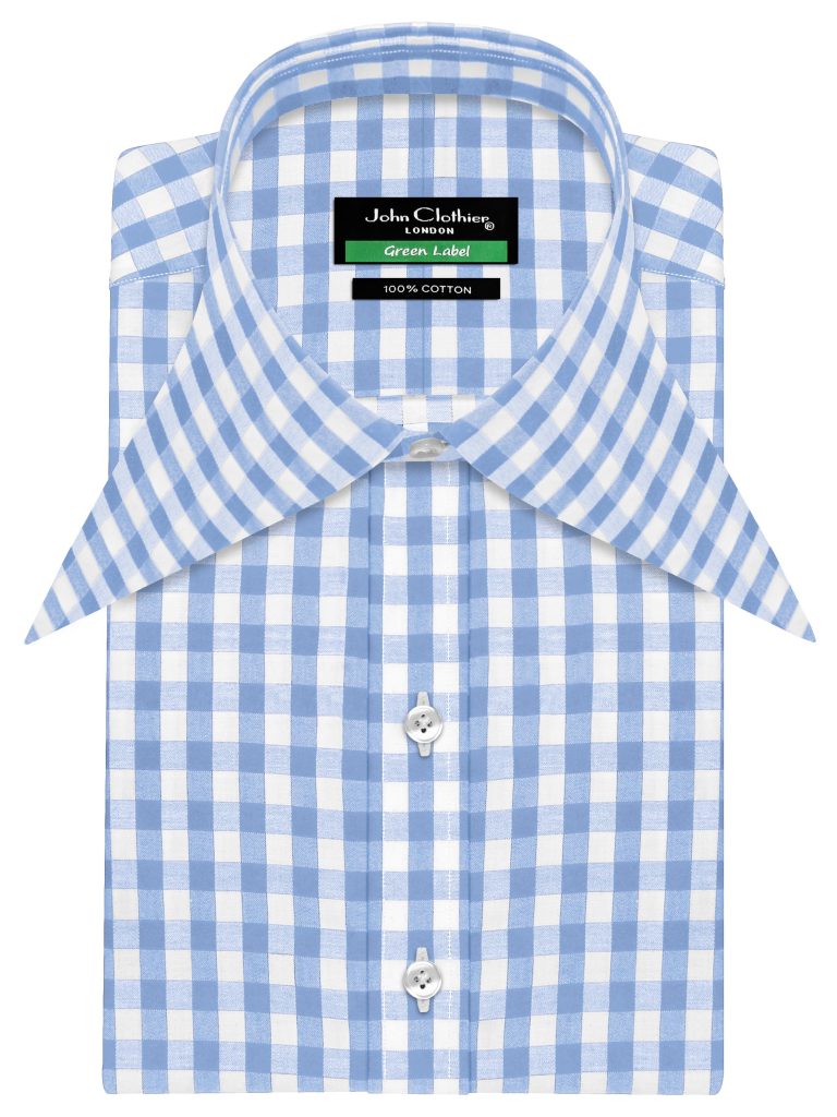 Sky Blue Gingham Checks High Band 2 Button Collar