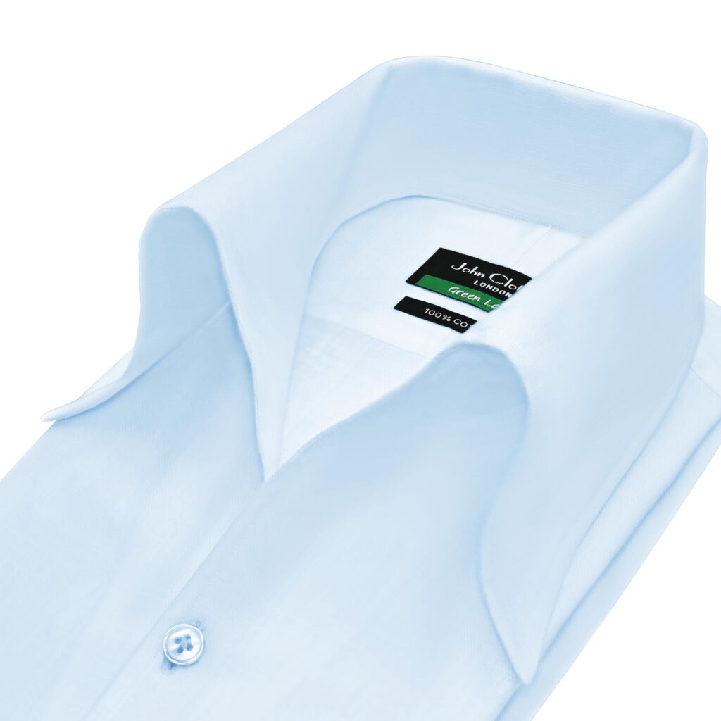 Sky Blue High Longpointed Collar Hidden Placket