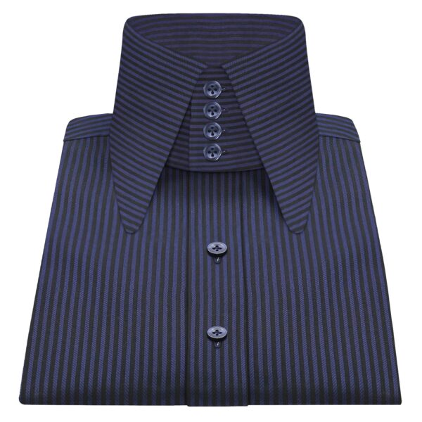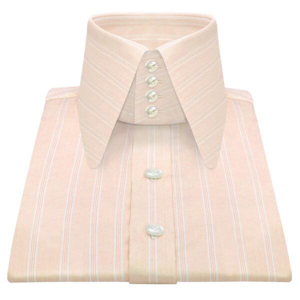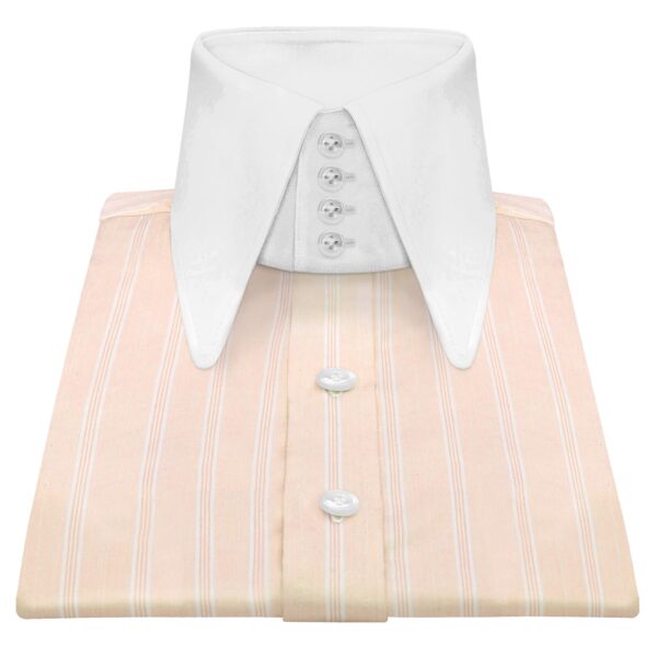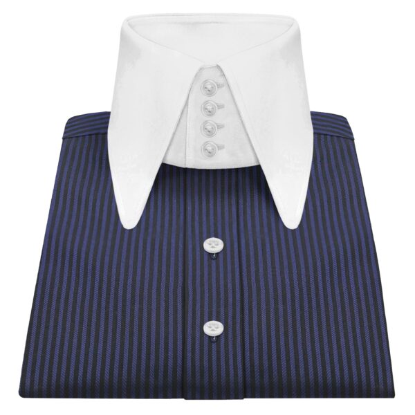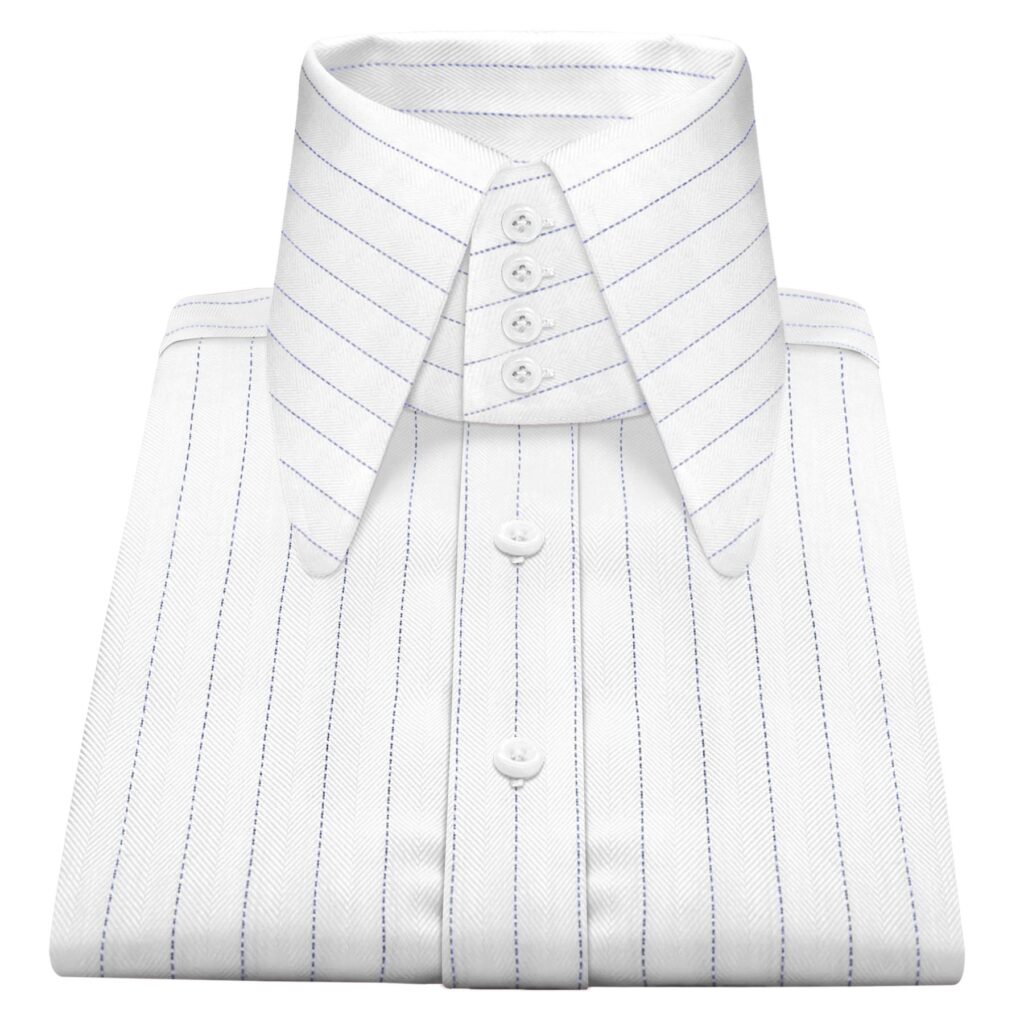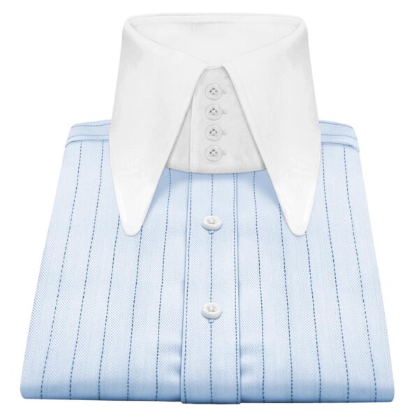 White Chalk Stripes High Long Round Tip 4 Button Collar
