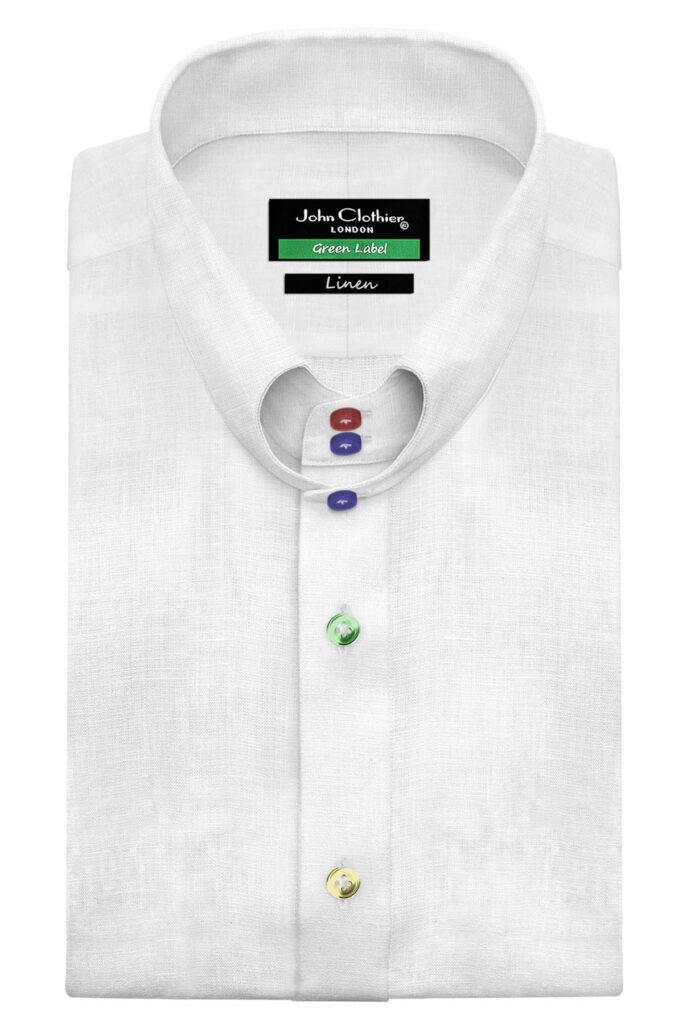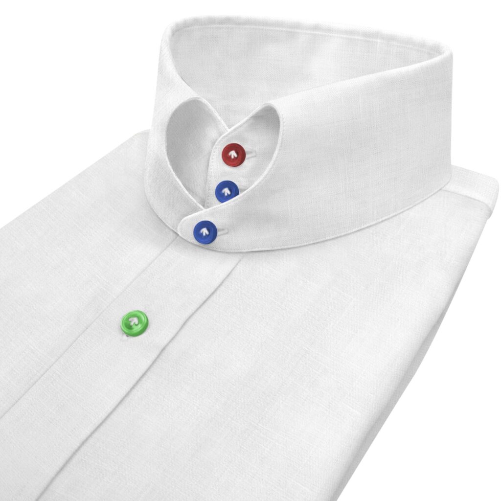 White Linen High Heart Shape 2 Black Button Tab Collar