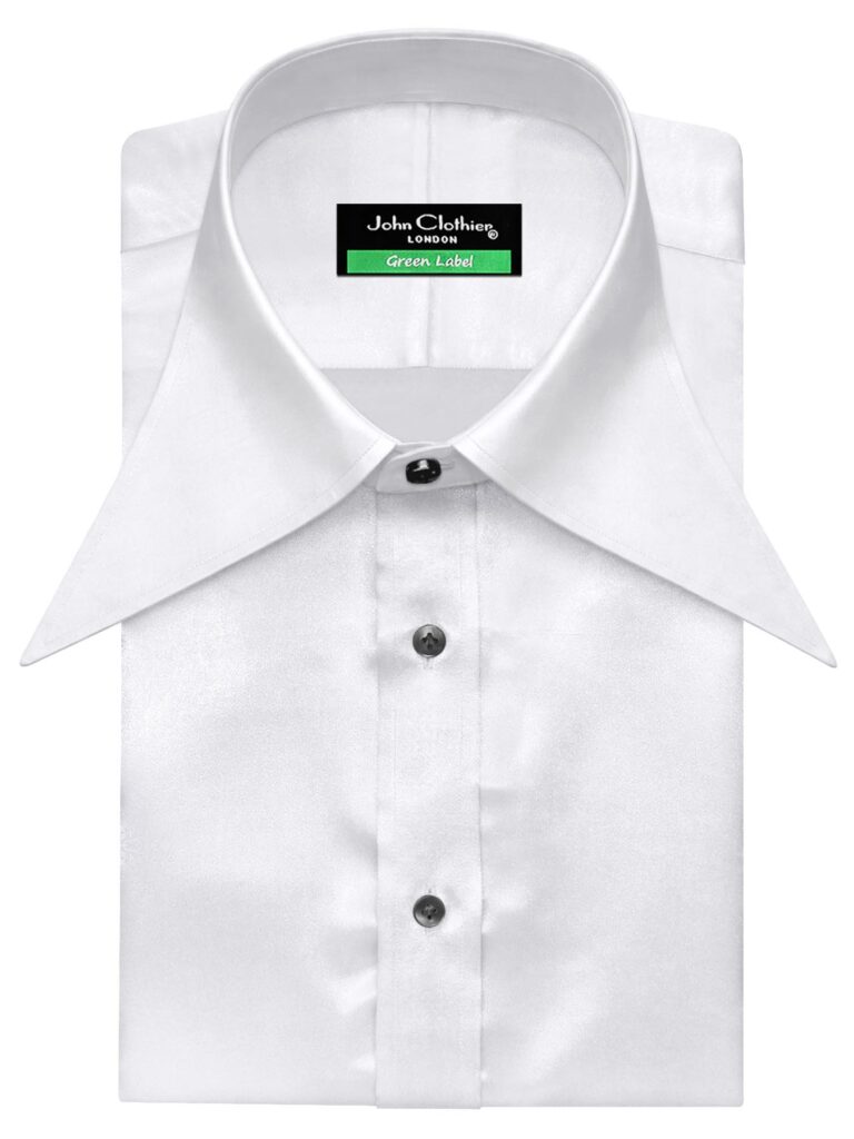 White Silky Satin Extreme Longpoint Collar Rainbow Buttons
