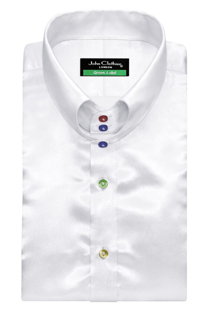White Silky Satin High Heart Shape 2 Black Button Tab Collar