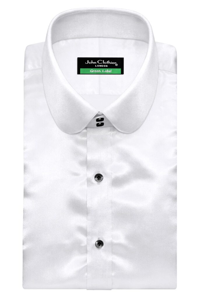 White Silky Satin High Penny 2 Rainbow Button Collar