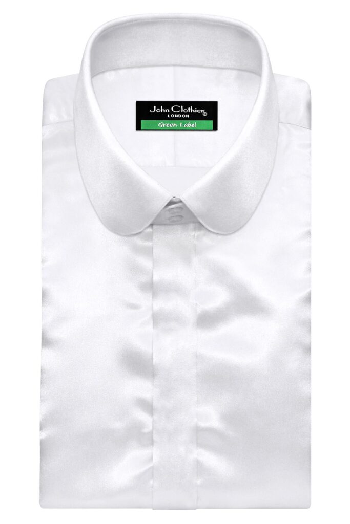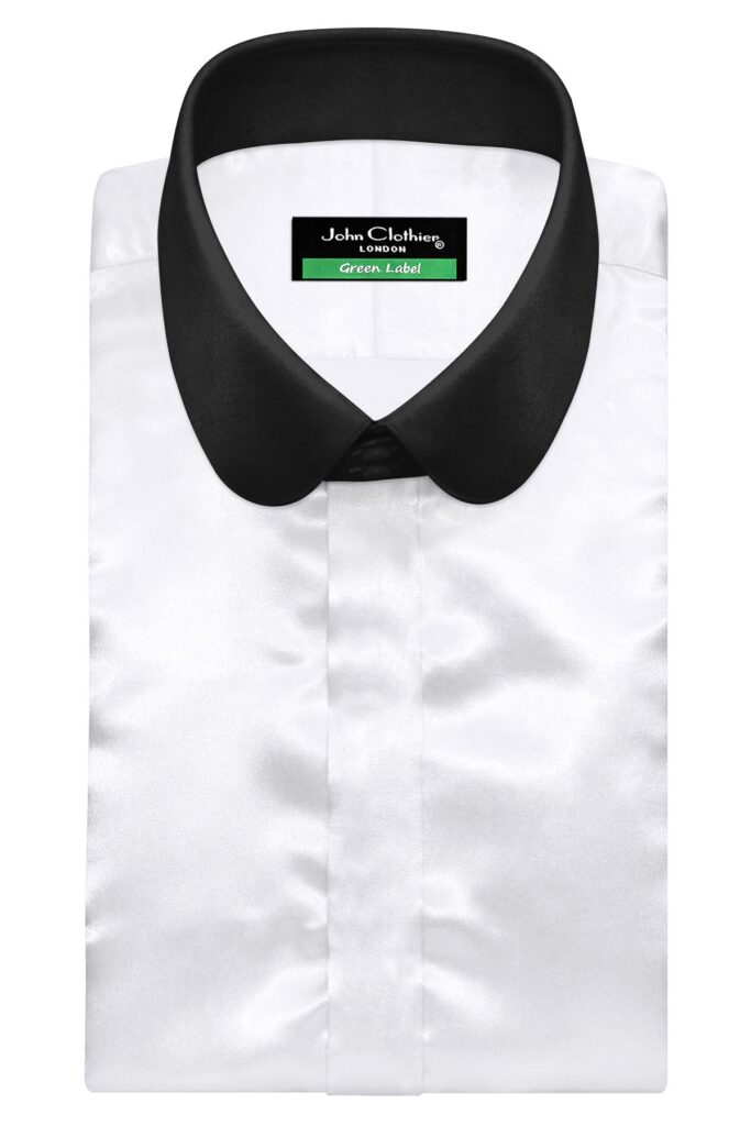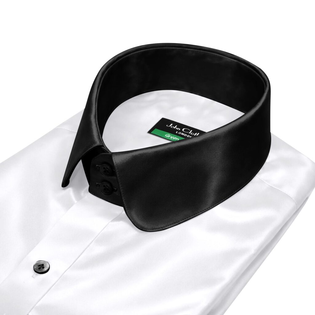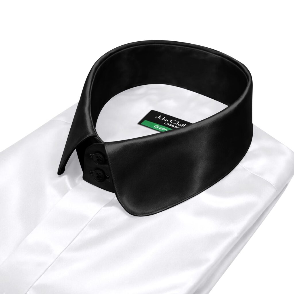 Black Silky Satin Contrast High Penny 2 Button Collar