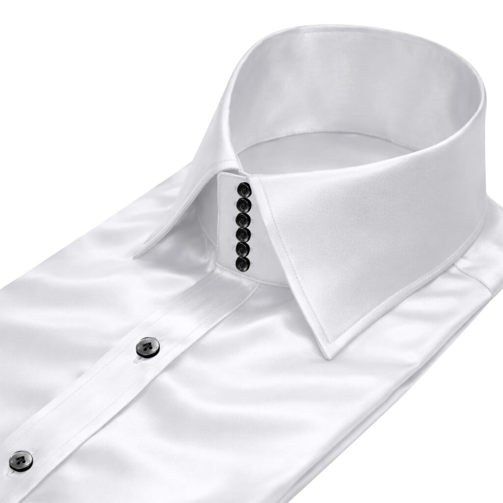 White Silky Satin High Spread 6 Rainbow Button Collar
