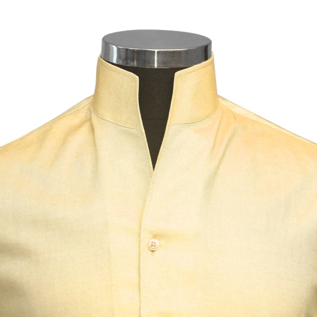 This collar is also known as Buttonless, V or Standup Collar.